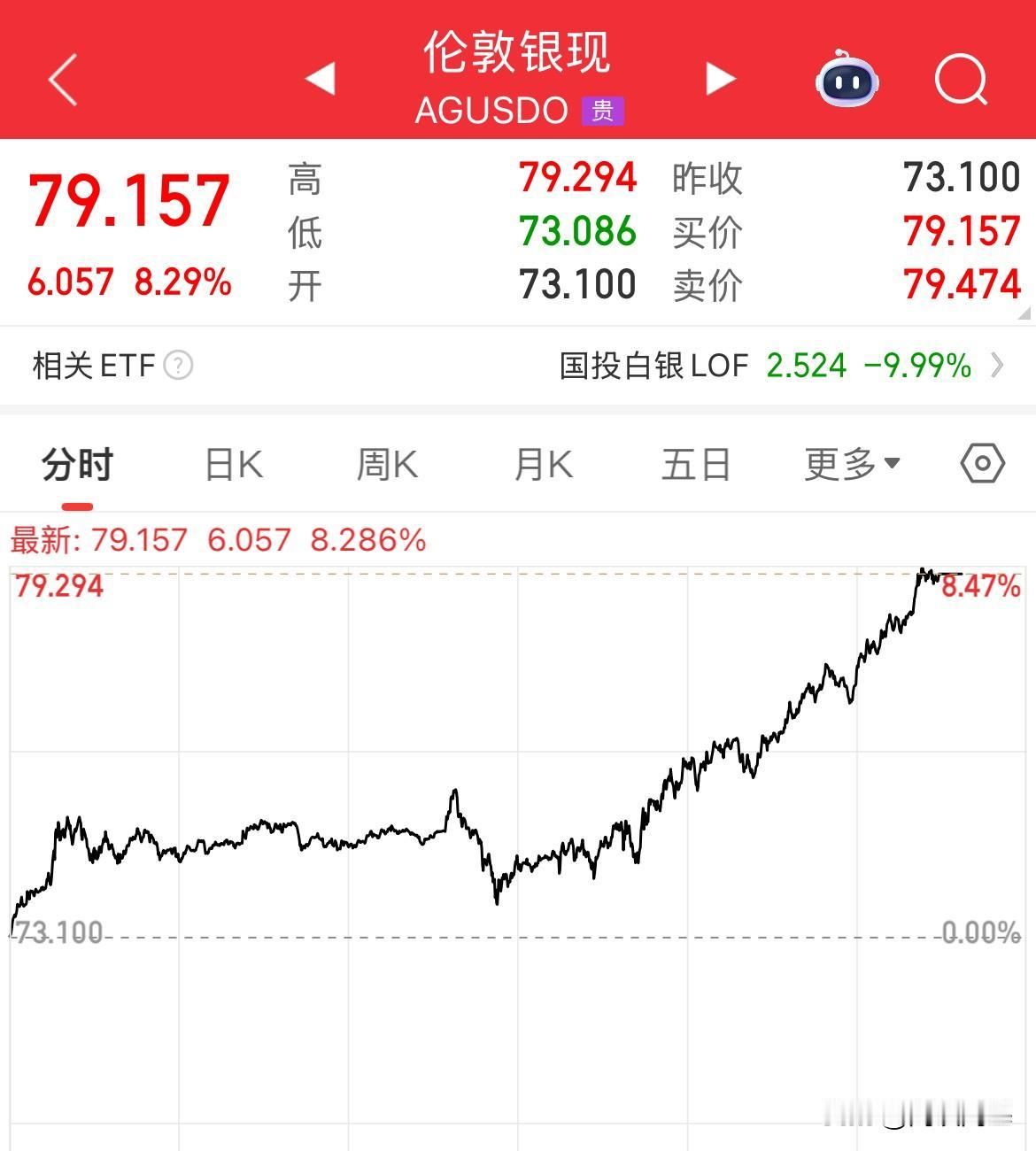 一觉醒来,白银涨疯了,一个晚上暴涨6美元,真是疯了,加速赶顶啊,这样涨100美元都不用几天了,涨懵了