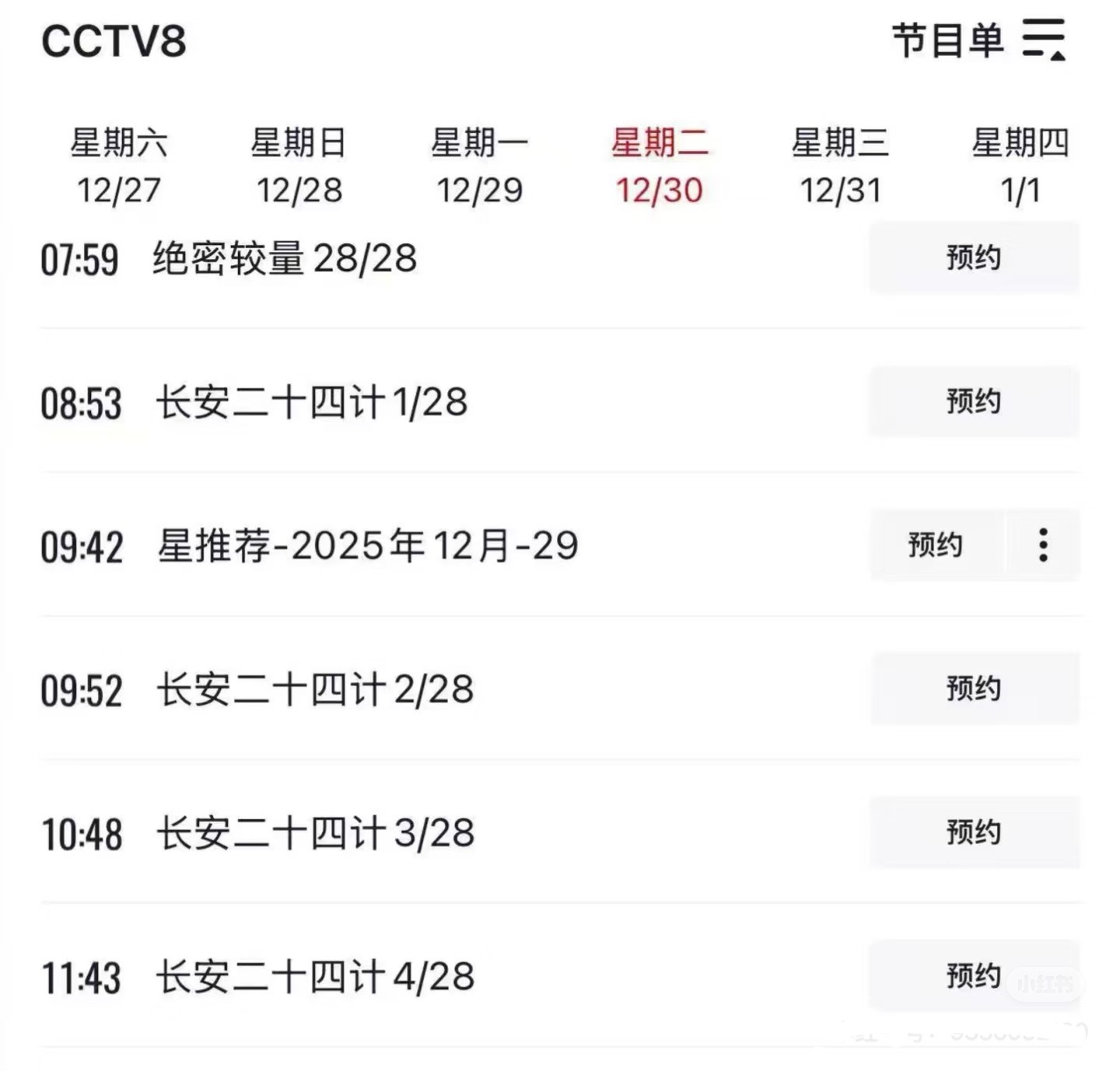 电视报排播出来了,恭喜成毅长安二十四计一轮还没播完,二轮上星央八上午档,12.3