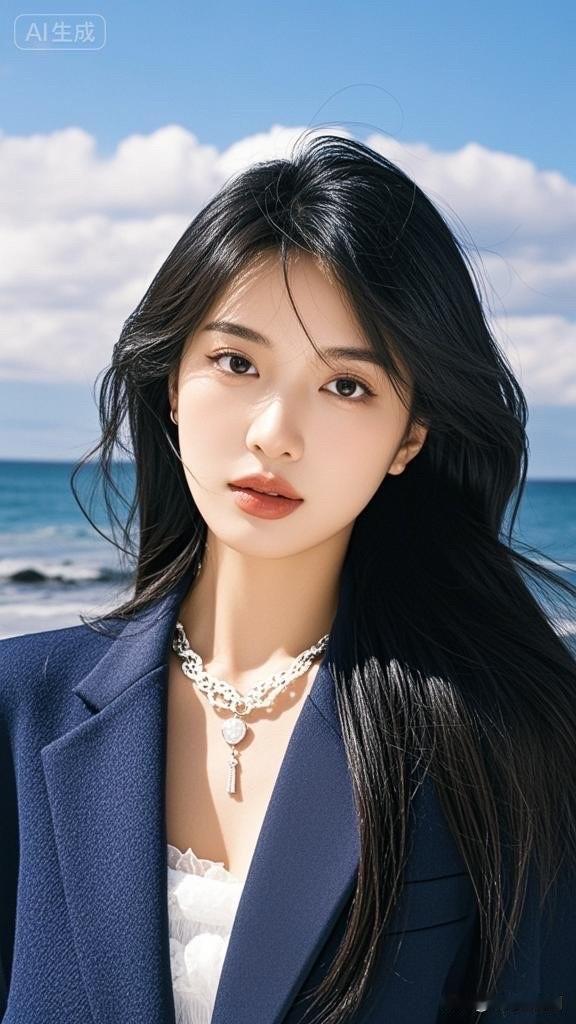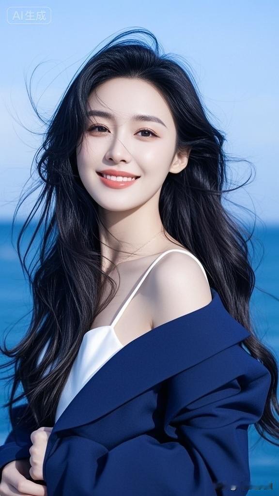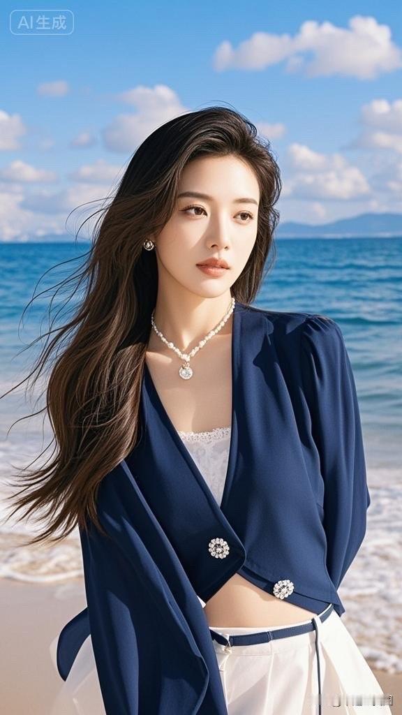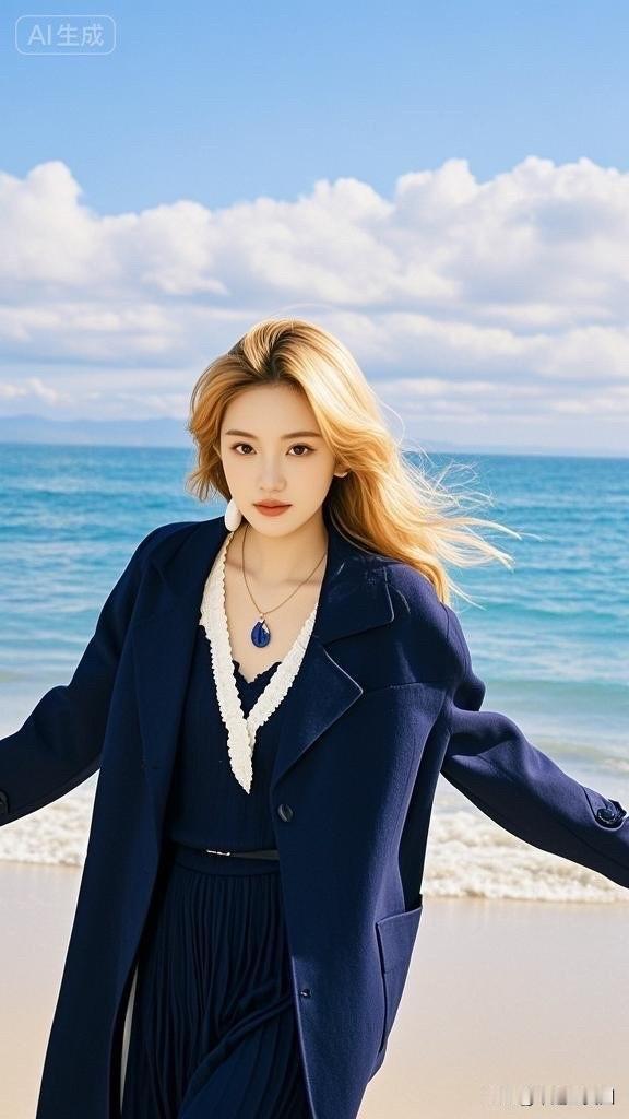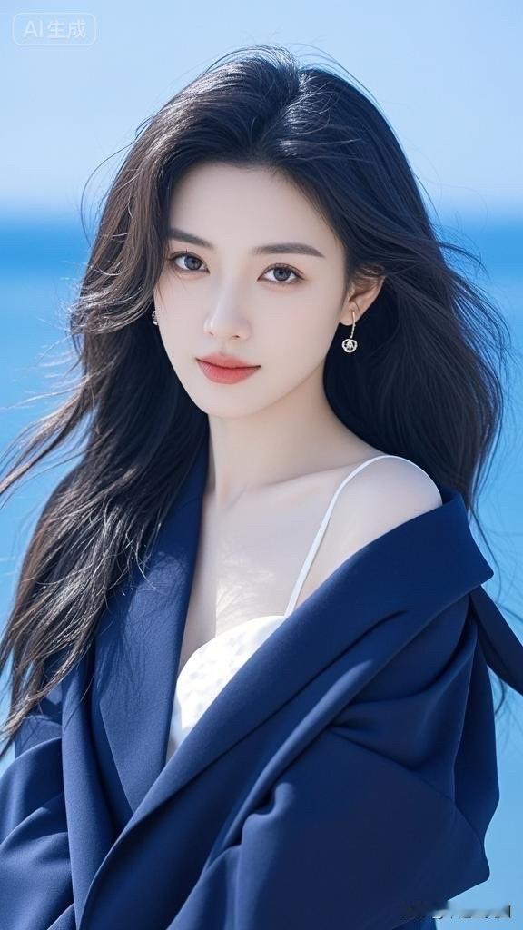 海边少女,优雅蓝调,清新自然,时尚穿搭