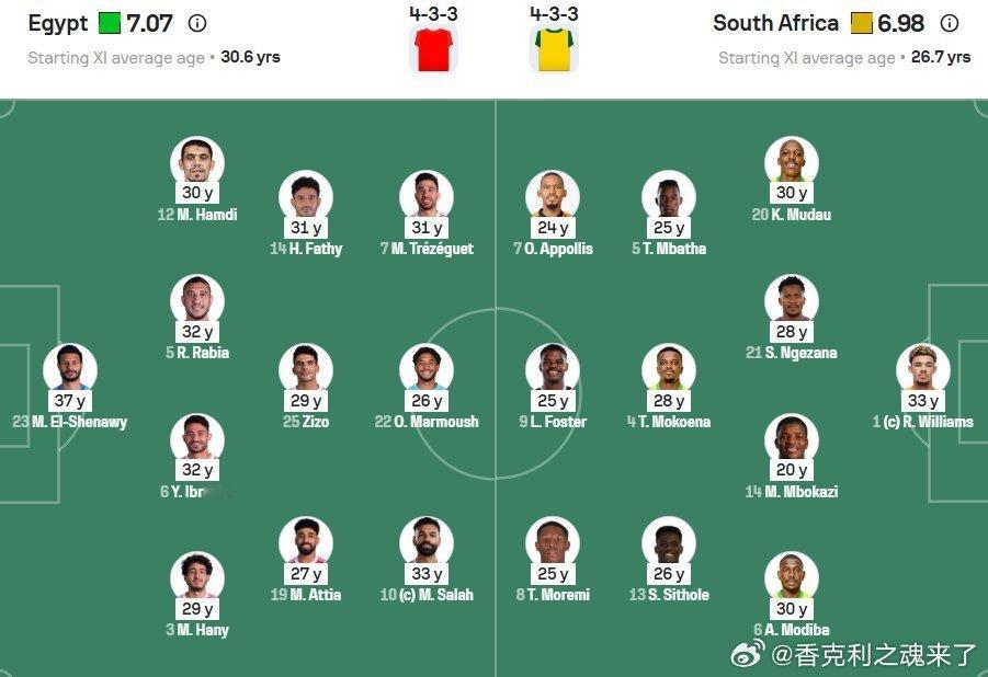 埃及国家队队员的平均年龄为30.6岁。7名30岁以上球员