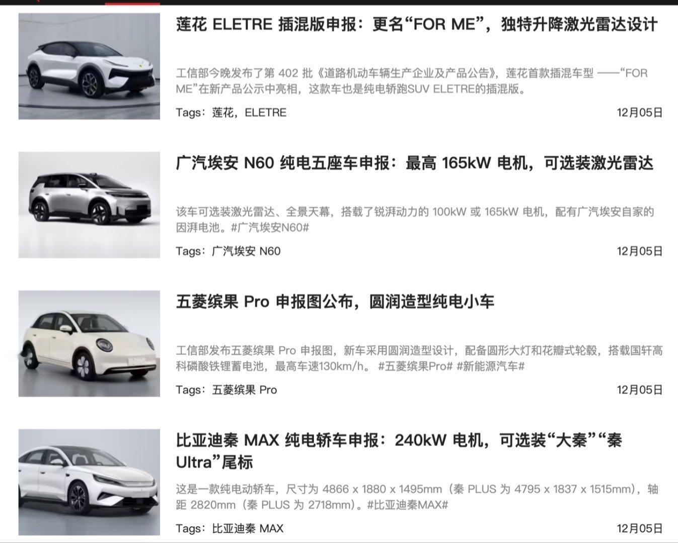 【“工信部车展”能看内饰了?明年汽车申报需提供驾驶室布局照片】在每个月的上旬或中旬,工信部都会公布最新一批《道路机动车辆生产企业及产品公告》新产品公示,而这也意味着不少车企最新产品借机迎来“首秀”。因此,每个月的新产品公示名单也被坊间戏称为“工信部车展”,出现在“工信部车展”的新车,按照惯例都会公布车身、车尾的“证件照”,以及外观选装件的图片。不过据工业和信息化部装备工业发展中心今天发布的《关于〈公告〉标准实施及产品准入相关要求调整的通知》,从明年第 404 期《道路机动车辆生产企业及产品公告》新产品公示列表开始,乘用车产品在申请准入时应在“结构图纸”中提供可体现前排驾驶室整体布置和内部结构的整体照片,并在佐证材料中上传该车型对应的《产品使用说明书》。简单来说,这意味着在未来的工信部申报信息中,一款新车的外观及内饰“证件照”有望同时登场。