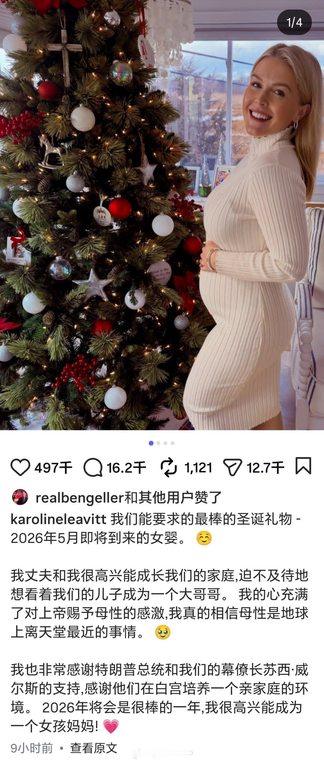 白宫发言人与60岁丈夫宣布怀孕当地时间12月26日,28岁的美国白宫发言人莱维特宣布怀孕,将于明年5月诞生一个女儿。