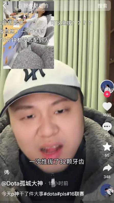 卧槽,看到Pis为了线下赛有个更好的形象,一次性拔了32颗牙齿!太狠了,想到我之前一次性拔了四颗,结果完全无法咀嚼食物,只能喝凉粥,三天瘦了五斤!我对当时医生说的话印象深刻,我说要不拔两颗吧,他说没事,你年轻,扛得住,然后回家我就发烧了...dota