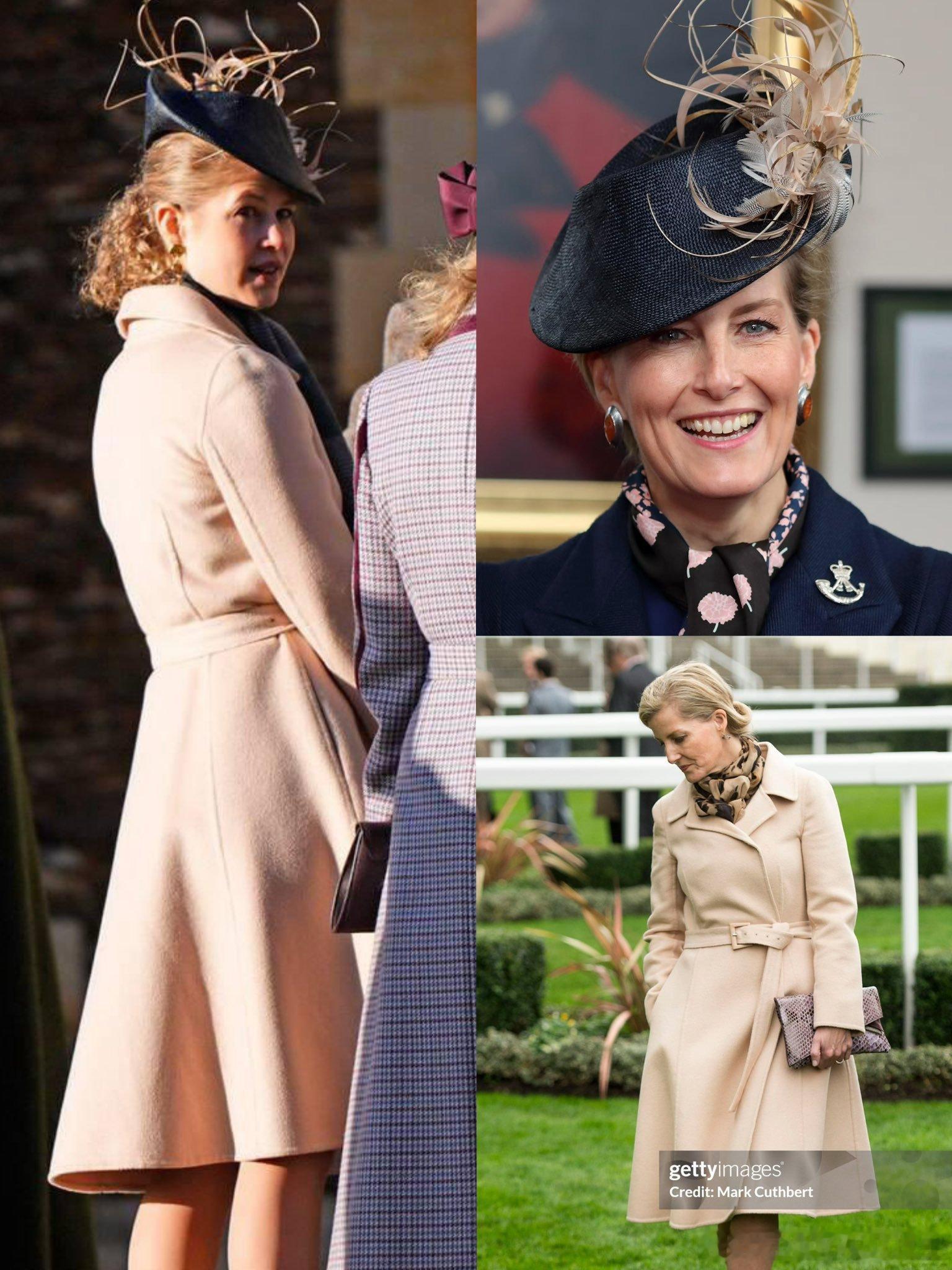 你究竟有多爱这件衣服 昨天出席一年一度圣诞礼拜的露易丝·蒙巴顿-温莎小姐,全身行头都来自母亲苏菲,包括Jane Taylor海军蓝羽毛饰边草编遮阳帽,Prada的米色系带大衣和Emilio Perera木质手柄黑包,其中头饰和大衣都是十多年前的老款了,总感觉露易丝妹纸穿老母亲的旧衣不太行,还是要穿适合自己年龄段的新款更出彩。(图2来自twitter:Mariana - The Edinburghs Fan Account)