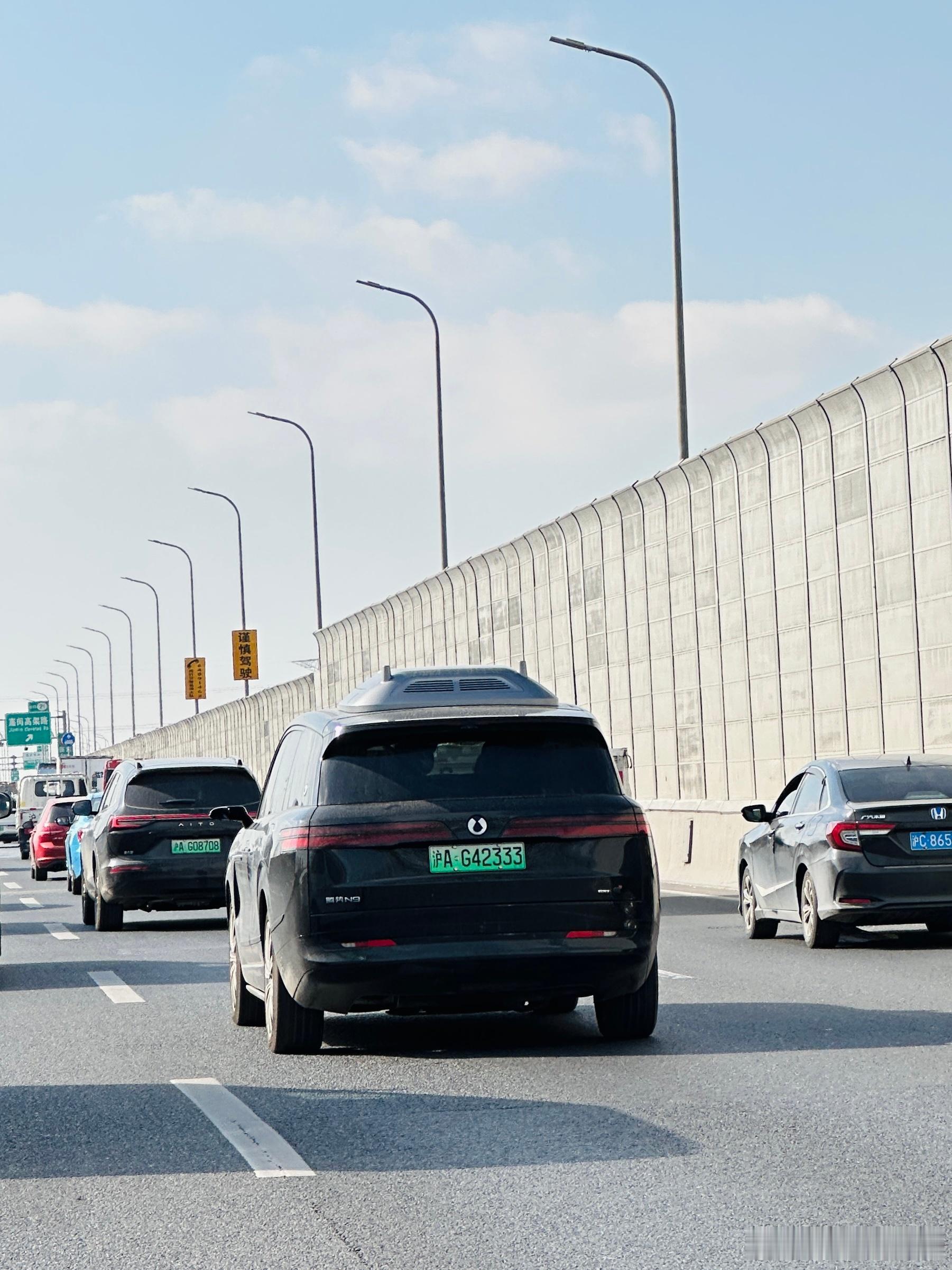 在路上看到一台带车顶无人机版本的腾势N9很少见耶菡你来看车汽场全开大v聊车