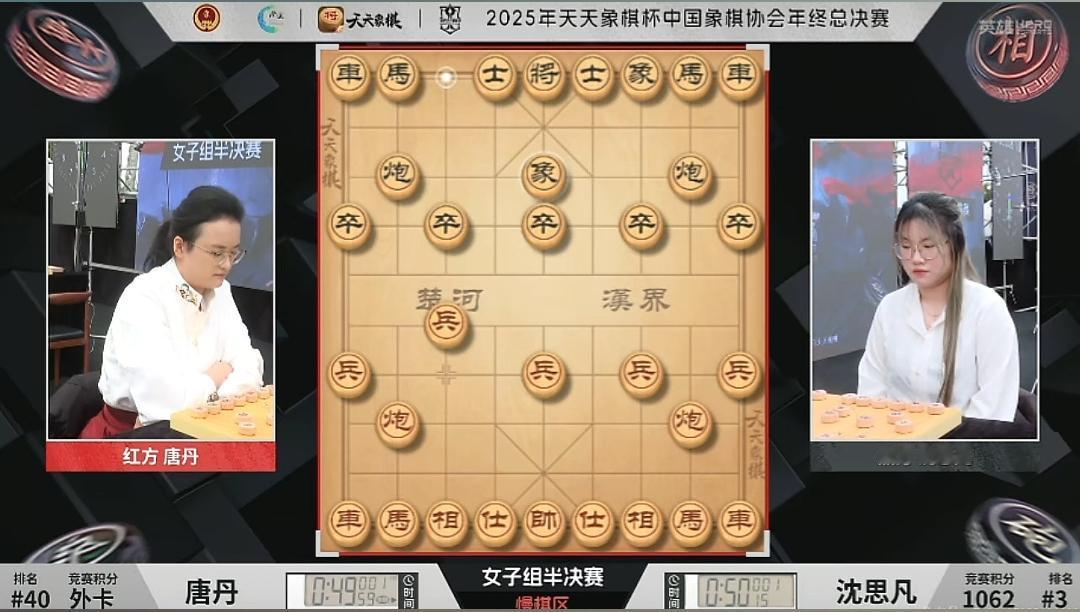“天天象棋杯”中国象棋年终总决赛男女组半决赛刚刚结束,最终王禹博加赛超快棋负于何文哲爆冷无缘决赛,另一场半决赛孟繁睿加赛超快棋战胜尹昇,与何文哲会师决赛。 女子组,唐丹慢棋先手战胜沈思凡,王文君加赛快棋负于李沁,唐丹与李沁会师决赛。