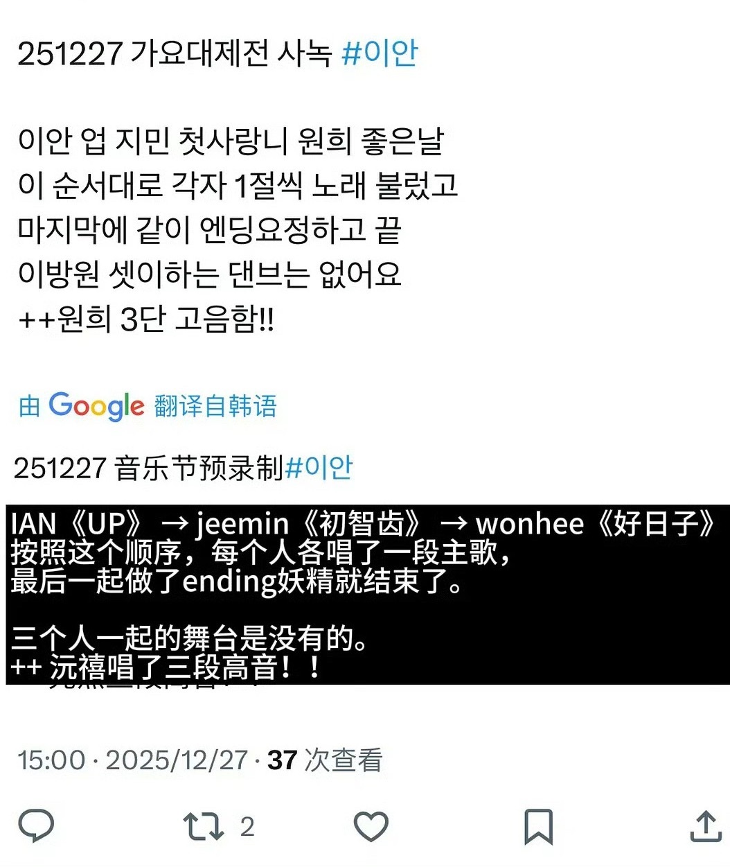 MBC舞台表演曲目IAN - karina 《UP》, 方智玟 – f(x) 《初智齿, 李沅禧 – IU 《Good Day》