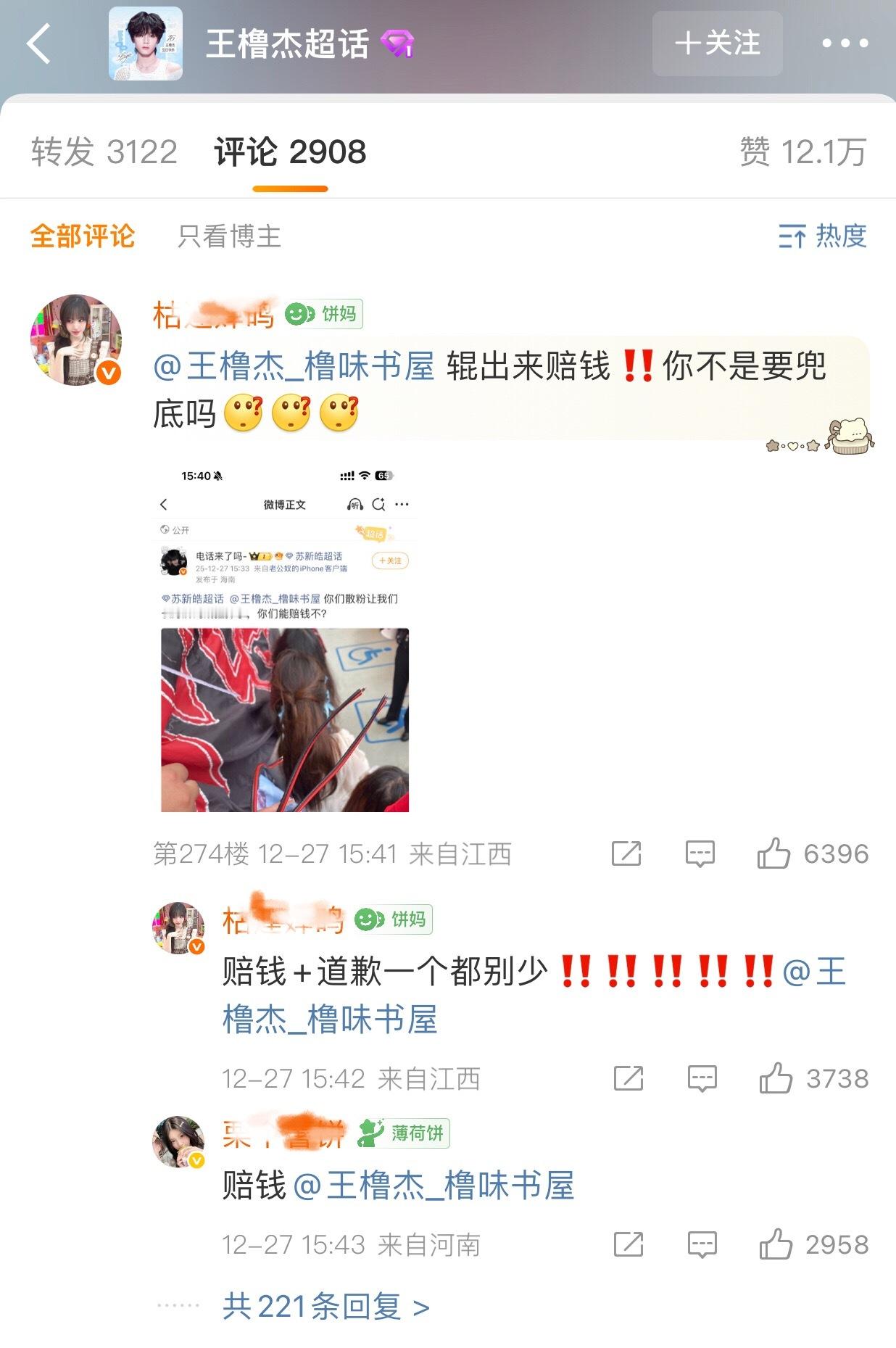 苏新皓粉丝在要求王橹杰粉丝道歉赔钱,灯牌给扯坏了