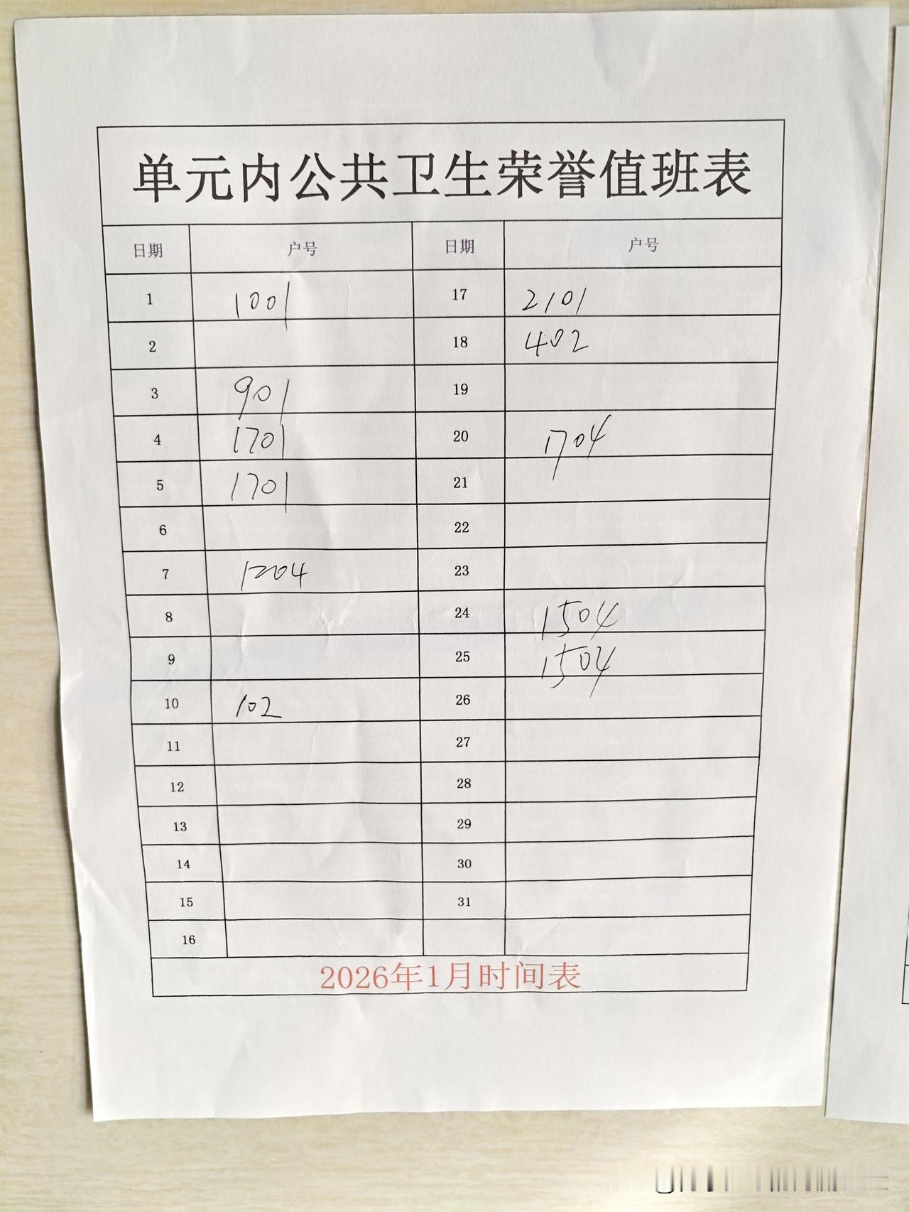 今天是金碧物业走后的第57天。 今天发现了一个安全隐患,就是在我们楼前的窨井盖碎裂了,据说有一位业主开汽车后备箱的时候差点掉下去。我把它拍下来发到了网格群里。我说请物管会处理一下,有人说这个应该找社区,我说找社区也应该由物管会去找村委会。后来6号楼的带头大哥(他是物管会成员)私信我,说已经反映给社区,目前物管会没有钱,只能出双手,出力,这个窨井盖就需要由村委会来处理了。 今天发现有人在1楼大厅乱扔烟头,好在今天打扫卫生的是我们的财务总管,也是一位热心业主,他不但把1楼大厅和电梯打扫干净,还用长扫帚把1楼天花板上的蛛网灰尘也扫干净。并且又到负1层,把地下车库打扫了一下。第2单元有业主也效仿他,去地下车库把2单元的地下车库的大厅扫了一下。 1月份的卫生值日表上面又加入了一位业主。上午我在1楼大厅碰到一位业主,她说她没有写上去的原因,是怕写了,到时候没有时间打扫。她会到时候看到1楼大厅不干净的时候会打扫的。 1楼大厅的玻璃上被贴上了喜气洋洋的彩色剪纸,这个剪纸是1楼一位业主自费买的,大家都在迎接元旦的到来。