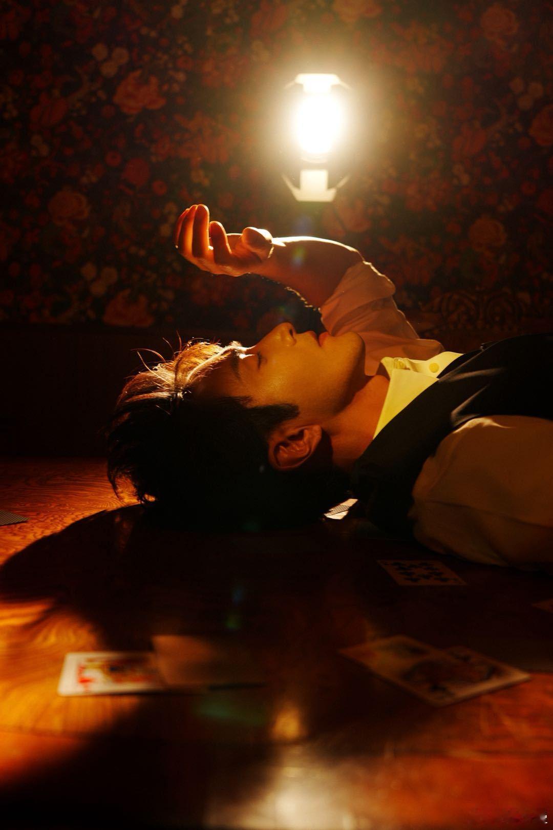 高伟光眼神比唇先落吻西装马甲配金丝眼镜,眼神里的侵略感直接拉满,扑克牌+烟雾的氛