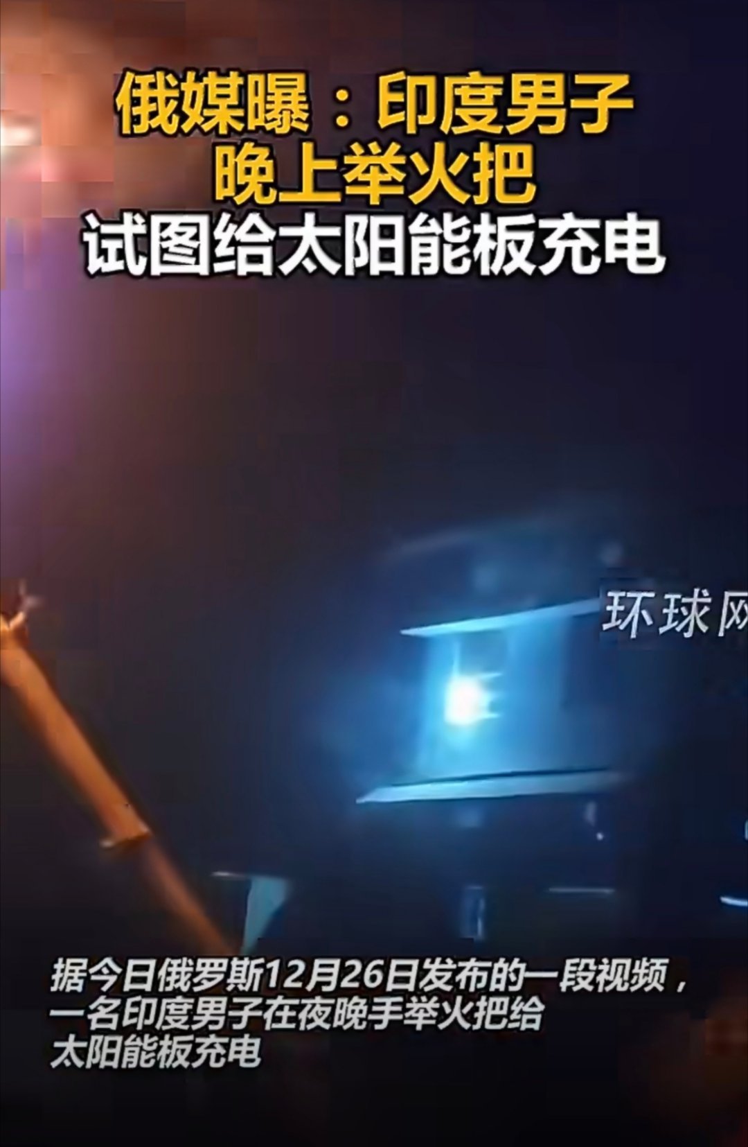 曝印度男子夜举火把给太阳能板充电举着火把很累吧,为啥不点几个大蜡烛放那,省事还耐烧。