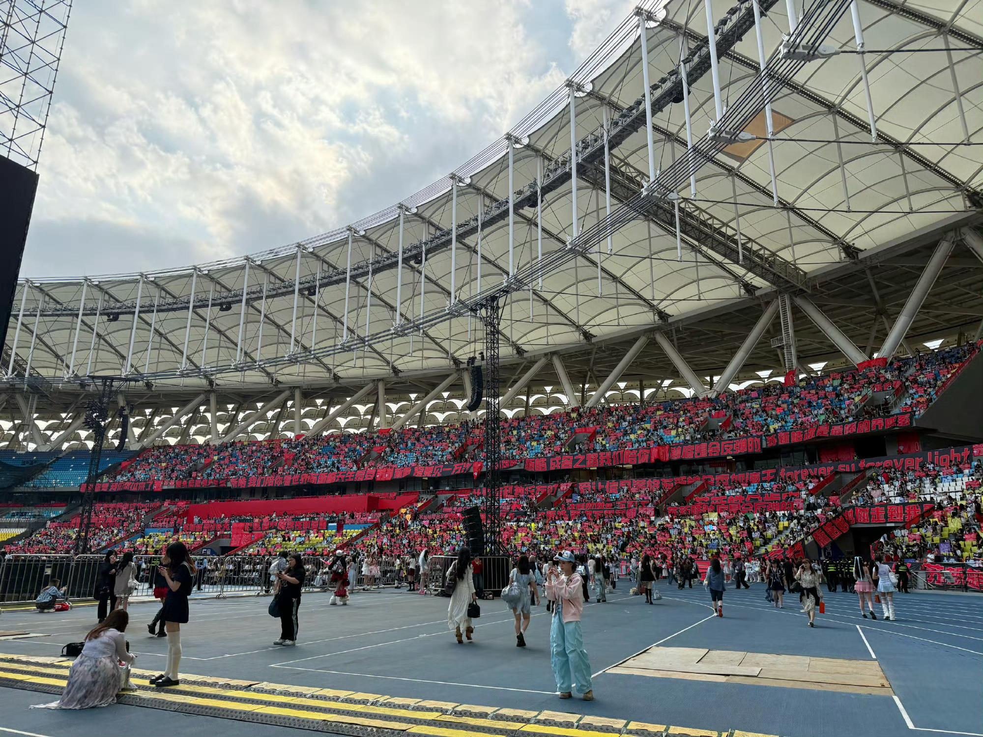 吴艳妮在成都穿着短裤大腿看起来很粗壮,表情自信又张扬