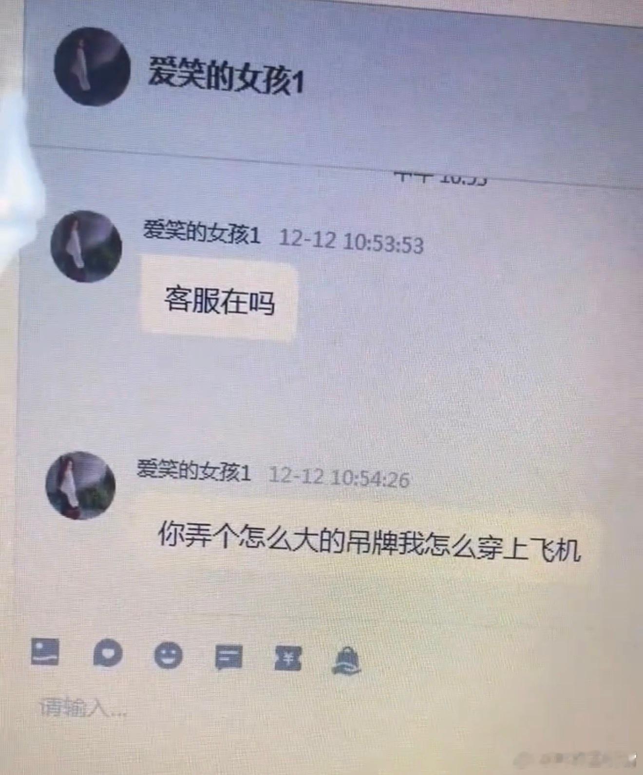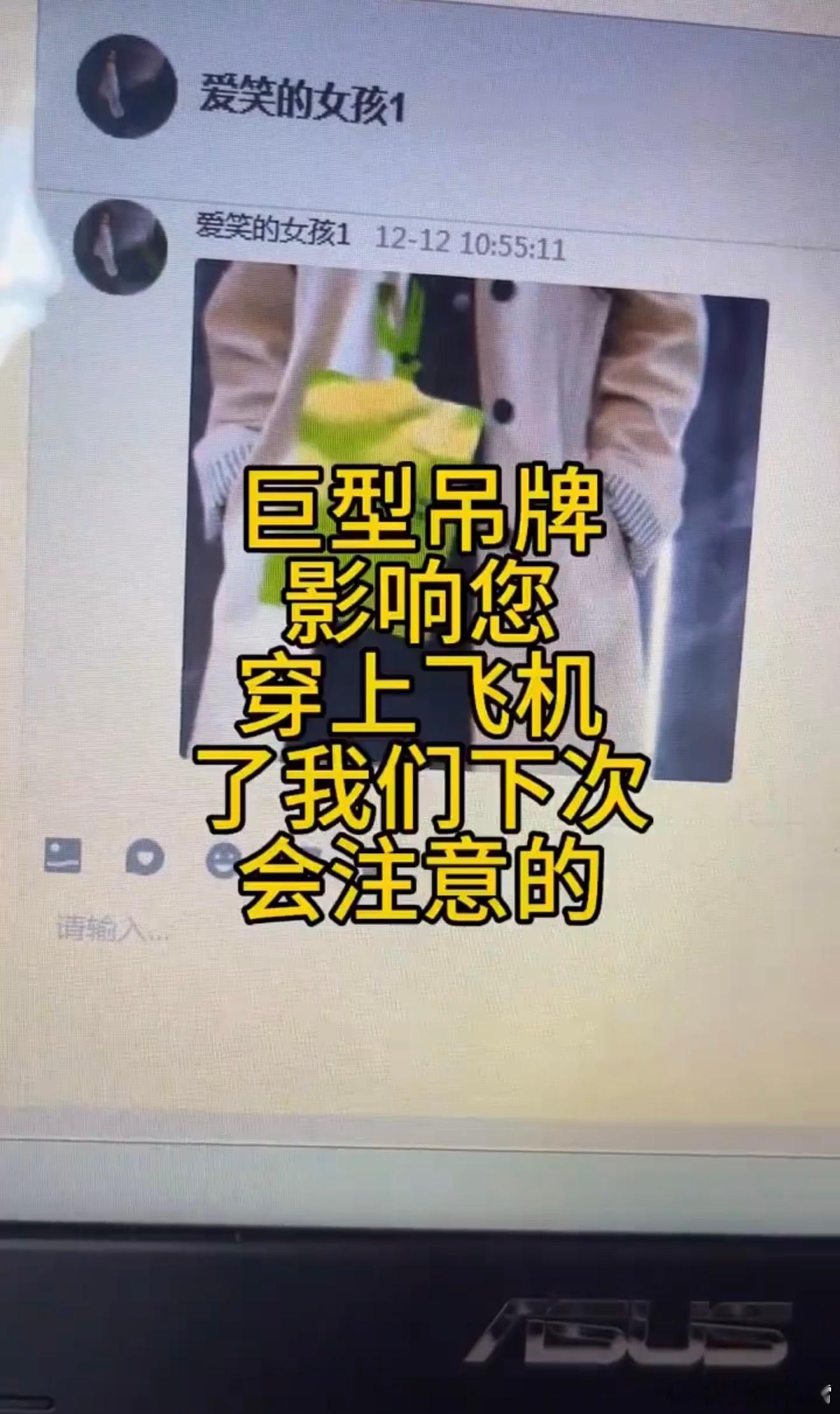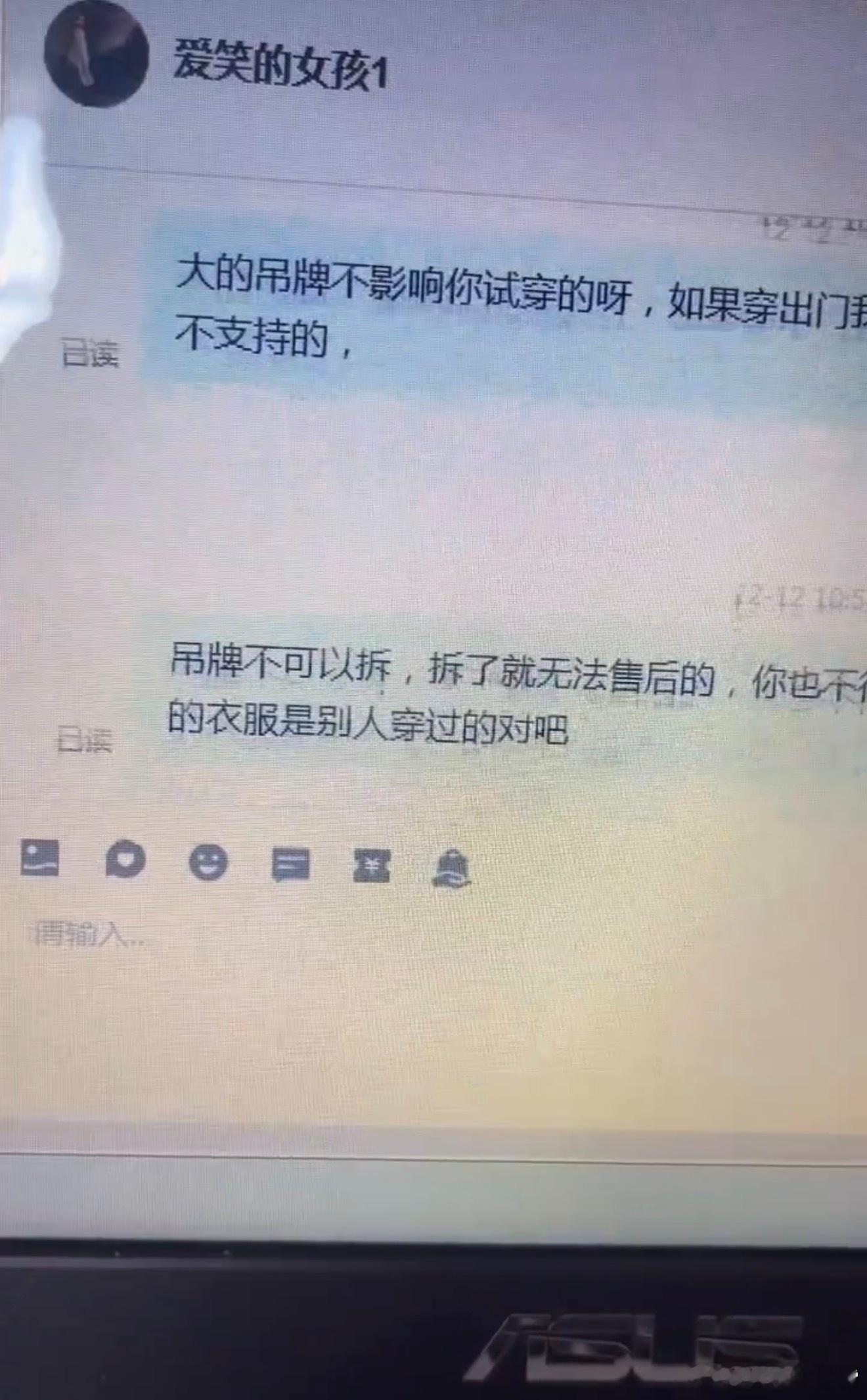 对不起巨型吊牌影响您穿上飞机看了下店家客服聊天记录挺离谱,我一直没懂这些蹭穿的人,是多没脸没皮才好意思去质问商家吊牌大不让拆的。带着吊牌穿出门不尴尬么,喜欢就自己留下,不喜欢不合身就退了呗,何必还要蹭店家衣服穿个几天再退,你们说这些人都咋想的?