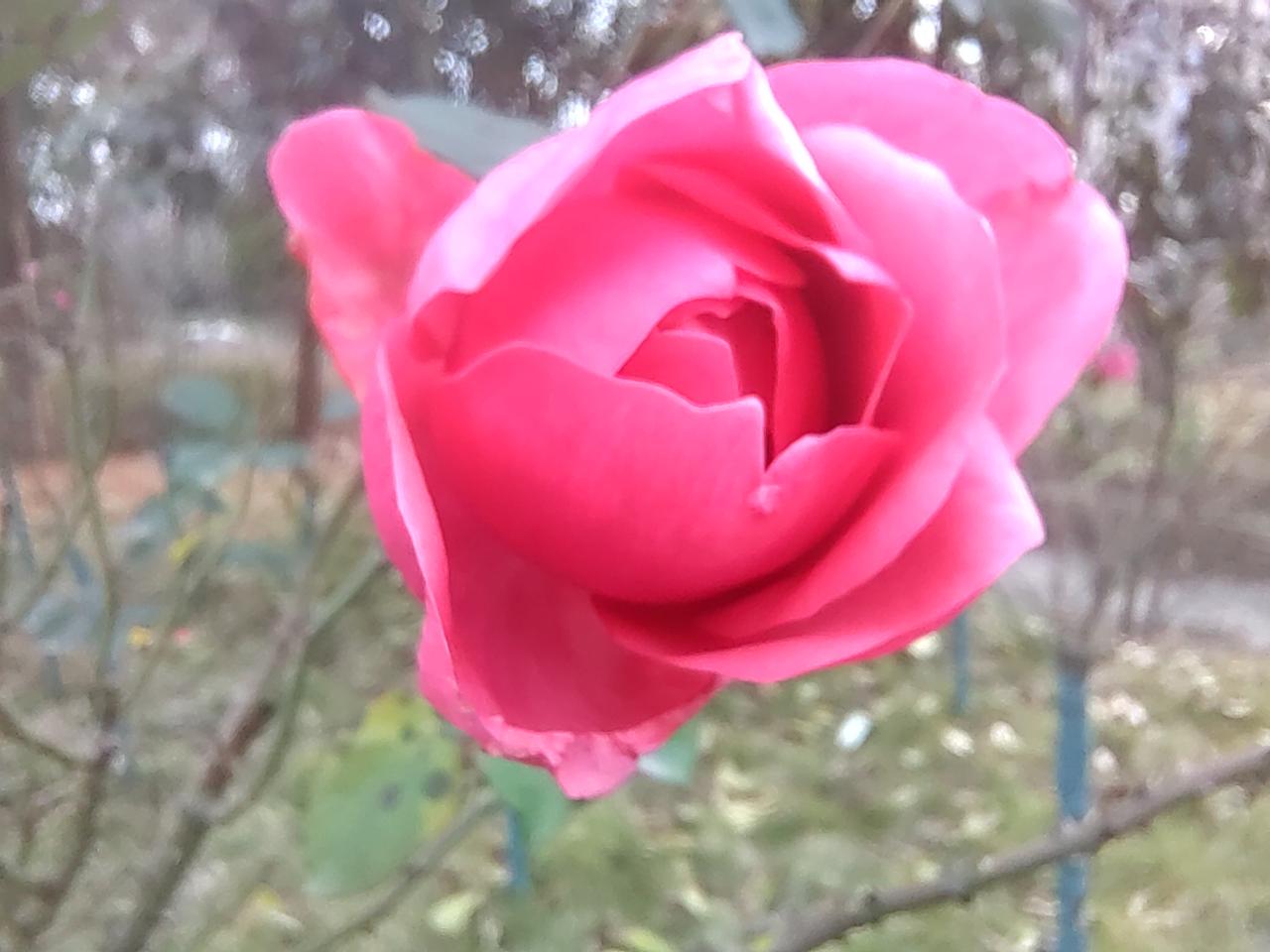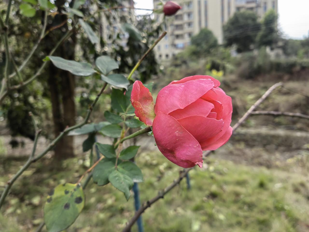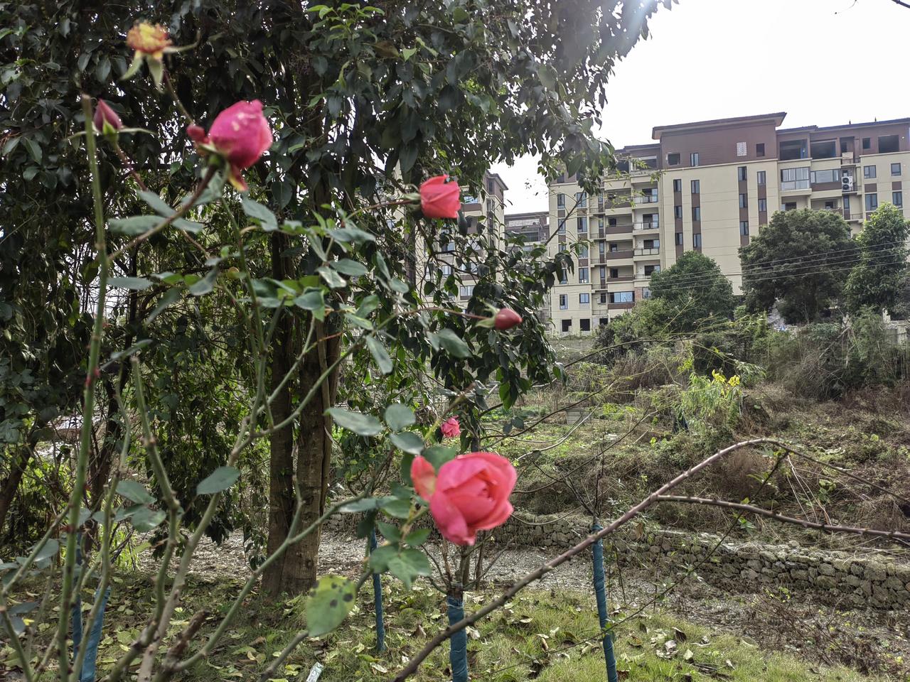 行走乡间的田野, 冬天天气很寒冷。 花草枯萎树枝秃 满目荒凉之感觉 在这寒冷之季节, 唯有月季花独醒。 绿叶之中花怒放, 耀眼夺目的花朵。 像少女羞红了脸, 让人看了挺着迷。 今天是星期五,我在家休息。今天又是阳光明媚的日子,气温回升,下午,我想出去走走,看看城郊的美景。 有这个想法的,还有很多人,出门来到大街上一看。街上来了很多的人。有的散步,有的唱歌跳舞,好热闹。 我来到明月大道,看到一处新建的绿化带,的月季花开得挺旺盛,忍不住用手机拍摄,要把这美景发上来与朋友们分享。