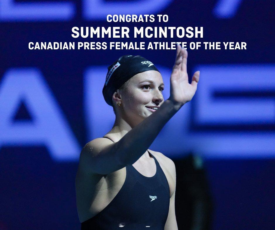 Summer妹妹获得加拿大通讯社评选的年度最佳女运动员称号!也是历史第二位连续三