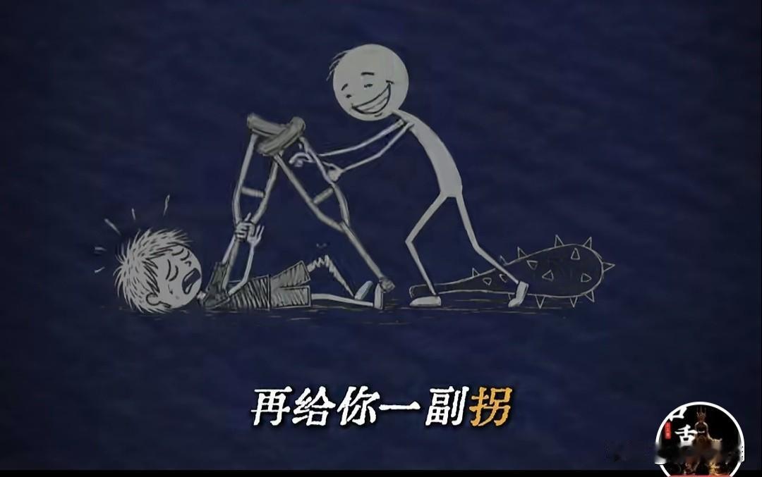 网友视频提醒我们:要分清谁在为你挡子弹,又是谁在背后朝你开枪? 打断你的腿,再给你一副拐,告诉你没有他,你连路都走不了! 把你推入万丈深渊,再扔下一根绳儿,告诉你除了他,这世上没人会拉你! 把你的自尊踩在泥地里,再帮你拍拍身上的灰土,告诉你除了他,没人能接纳你的狼狈! 抢走你原本的笑容,再教你怎样去假装快乐!明明是他让你雨打风摧,还要让你感念他撑伞的恩情! 别把推你入地狱的人,当成带你上天堂的神!他不是在救你,而是在训化你。因此一定要分清,是谁在为你挡子弹,为你挡风遮雨!又是谁在你背后,向你扣动扳机! 不得不服,网友这个视频做得好!画面幽默,形象逼真;文字意义深刻,就像一首朦胧诗,让人品味无穷! 本人不知这位网友,频文表达的主题是什么?是想说一种社会现象吗? 苍狼不才,想回答一下他的问题: 1.是谁在为我们挡子弹?当然是我们的政府吧!因为我们的政府,是人民的公仆,是全心全意为人民服务的! 2.谁在背后朝人民开枪?应是史太林萨达姆卡扎菲波尔布特吧!频文叙述的行为,不就是他们的所做所为吗? …………