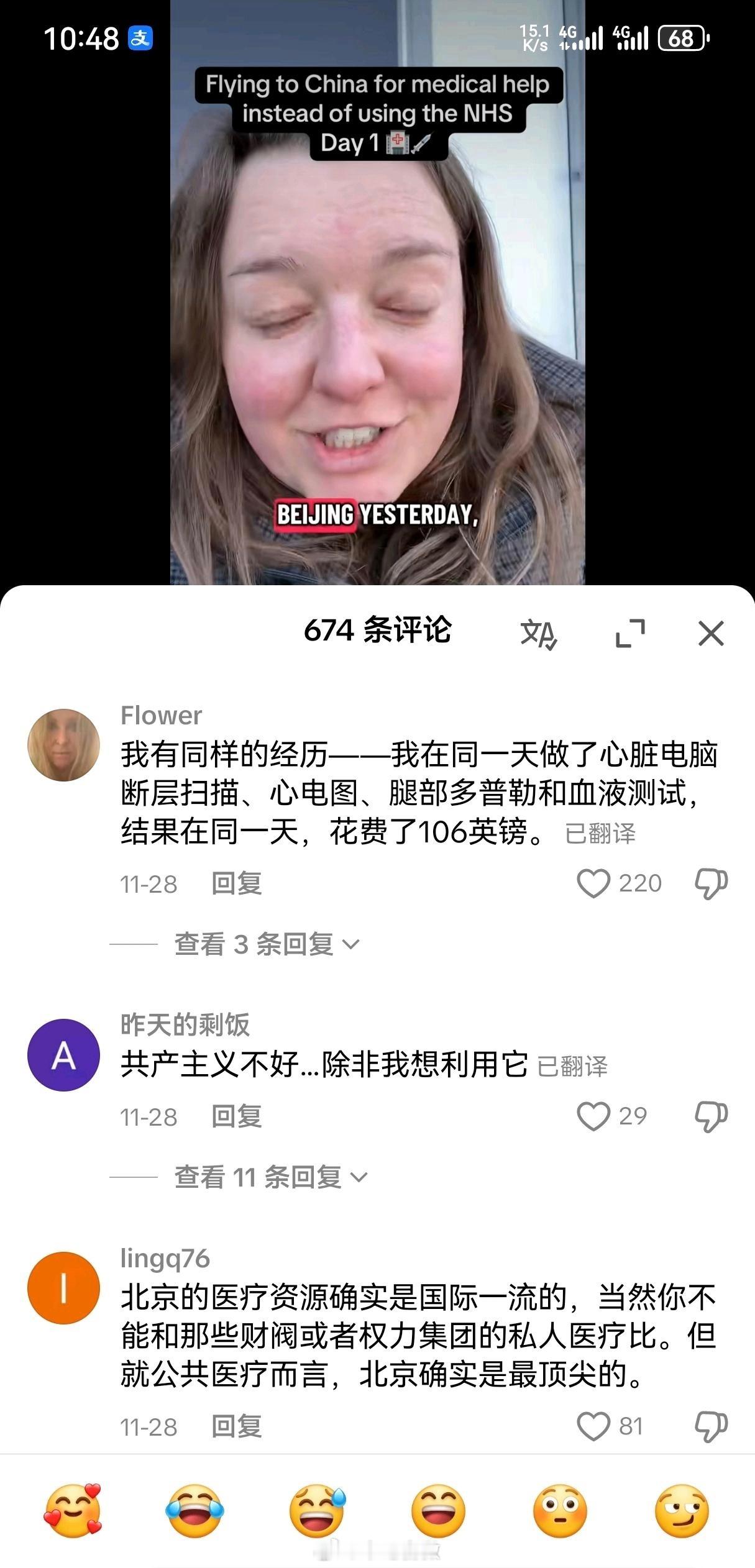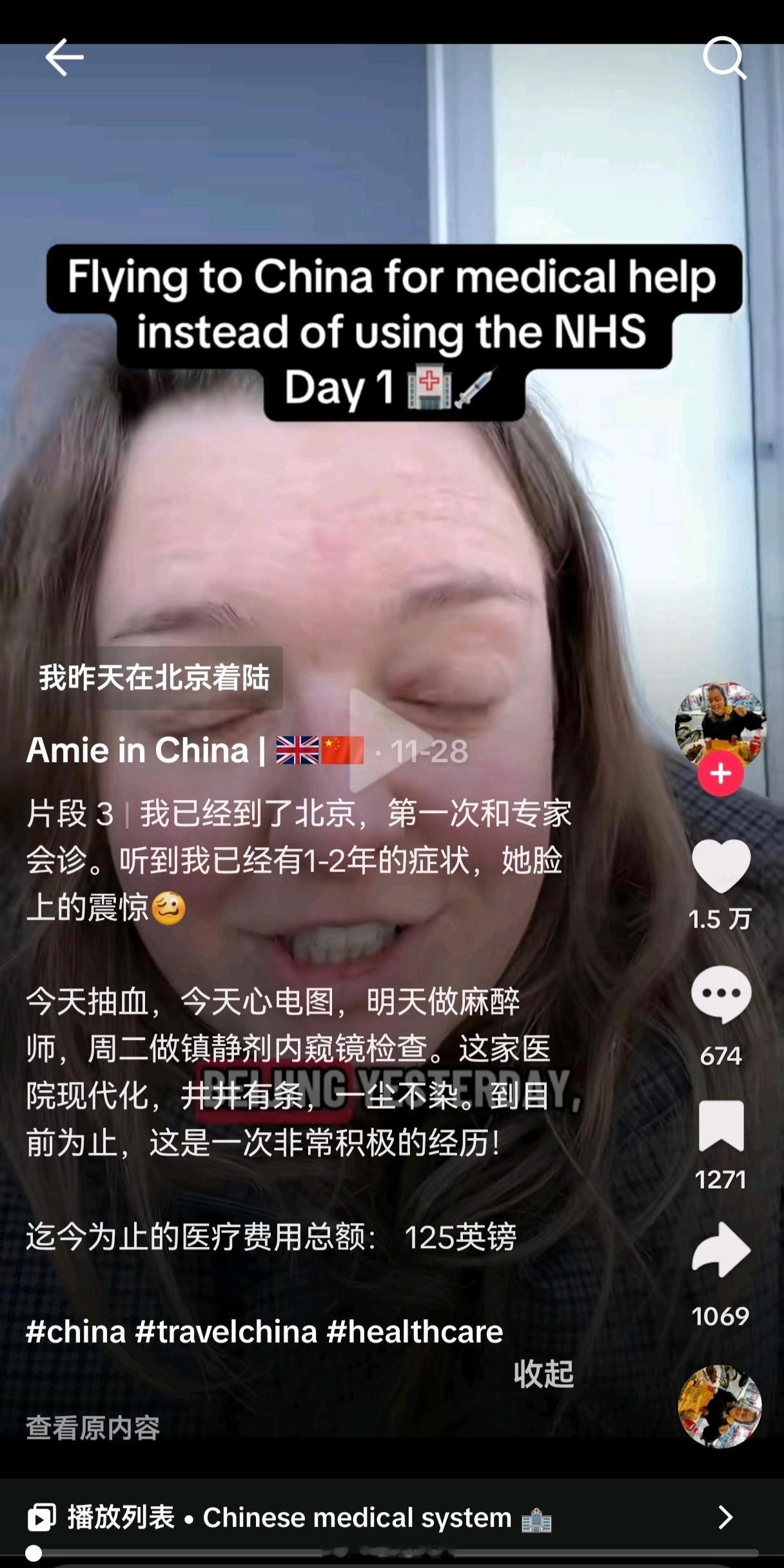 太香了,我们的医疗系统被英美老外们在tk上发现了。甚至已经出现了新的词汇,来中国”医疗旅行”,当然他们得掏钱,心电图体检什么的花费1200左右,还感觉非常便宜。