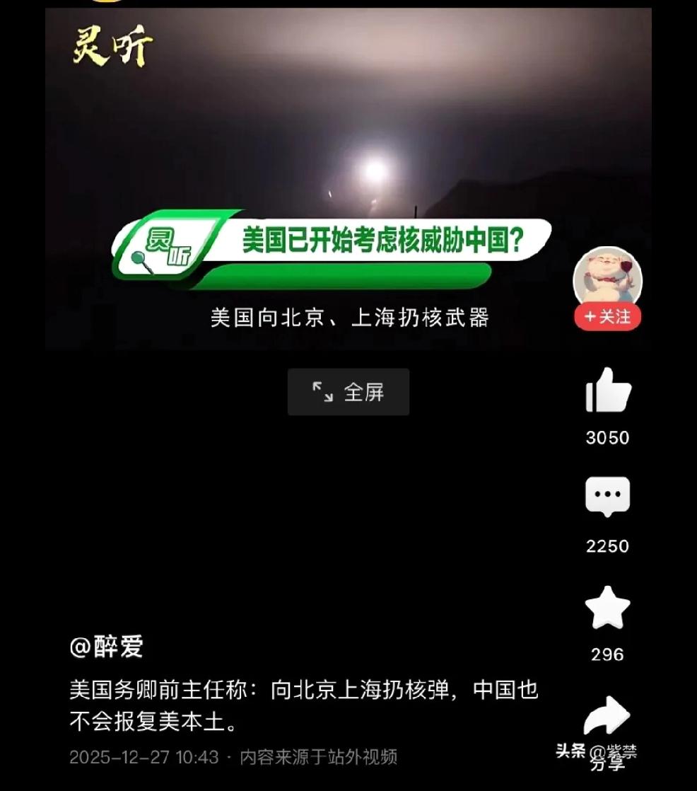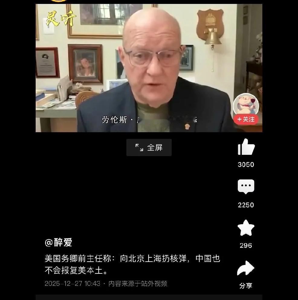 无脑美国人说狂话 个人观点:先看两个所谓的有身份,有地位的美国精英所说的话。 一位是美国前国务卿办公室主任宣称:“就算向中国的北京,上海扔核武器,中国也不会还手,不敢攻击美国本土。” 这是故意说狂话,用来证明自己,那微不足道的如萤火虫一般的存在感。是在向主人证明我还是一只会狂吠的老老狗,还有点用。这是一只即将被美国斩杀线碾压的老狗。 一位是美国总统特朗普的女婿,全球知名的富二代,贾里德•库什纳。 简略如下:贾里德•库什纳喊话美国人:“别抱怨,努力就能实现梦想。” 还想举例说明, “你们觉得我爸花300万买哈佛录取,再直接给我家族企业的工作?” 说完自己都觉得尴尬:“好吧,这例子不太适当。” 这只能说又是一个狂妄无知之人,正在说无知之话,这就和中国人所共知的那句:“何不食肉糜?”有异曲同工之妙。 这就是此时此刻的美国精英,表现出的认知水平。个人表示:“难以接受,强烈抗议。” 这种货色,只值得我这个中国普通老百姓的抗议。中国政府不屑于抗议,因为杀鸡焉用牛刀。