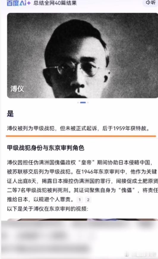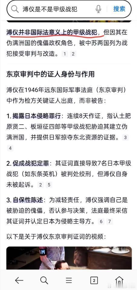 什么人在洗白溥仪的甲级战犯身份?图1:前几天的搜索结果,告诉你不是。图2:被纠正过来了,告诉大家只是被特赦的。图3:你搜溥仪是不是甲级战犯。又被人悄悄改成并非“国际法意义上的甲级战犯”。远东国际军事法庭,你猜为何要有“国际”两个字?幸亏图一被发现得早,不然我猜有人又要编造什么溥仪的几大贡献了