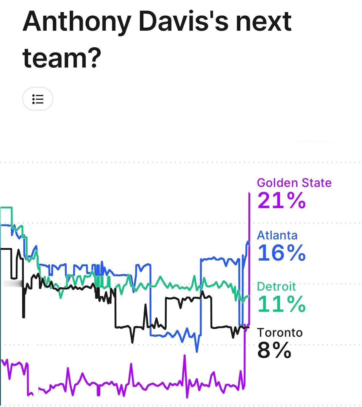 勇士已成为最有可能得到浓眉的球队。独行侠正在公开将戴维斯放在交易市场上出售,希望在二月的交易截止日前找到一笔优质交易。金州勇士