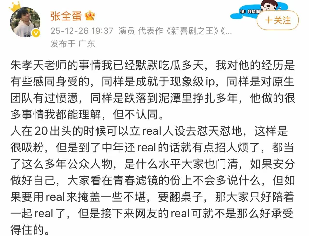 娱乐圈好神奇,是个阿猫阿狗就是老师,老师真不值钱,可笑的是他们还当真了。 都一把年纪了还觉得自己很真实,其实非常虚伪,为了流量不折手段。 一直吃着锅里的,现在吃不到了就掀桌子,这不是直率这是真小人! 命挺苦的人,单亲家庭,最后性格古怪, 不合群也正常。 35岁了,还是明星,成人高考了!就那回事吧!就吹了。读的导演,最后导啥了?就这情商,台湾都混不下去。