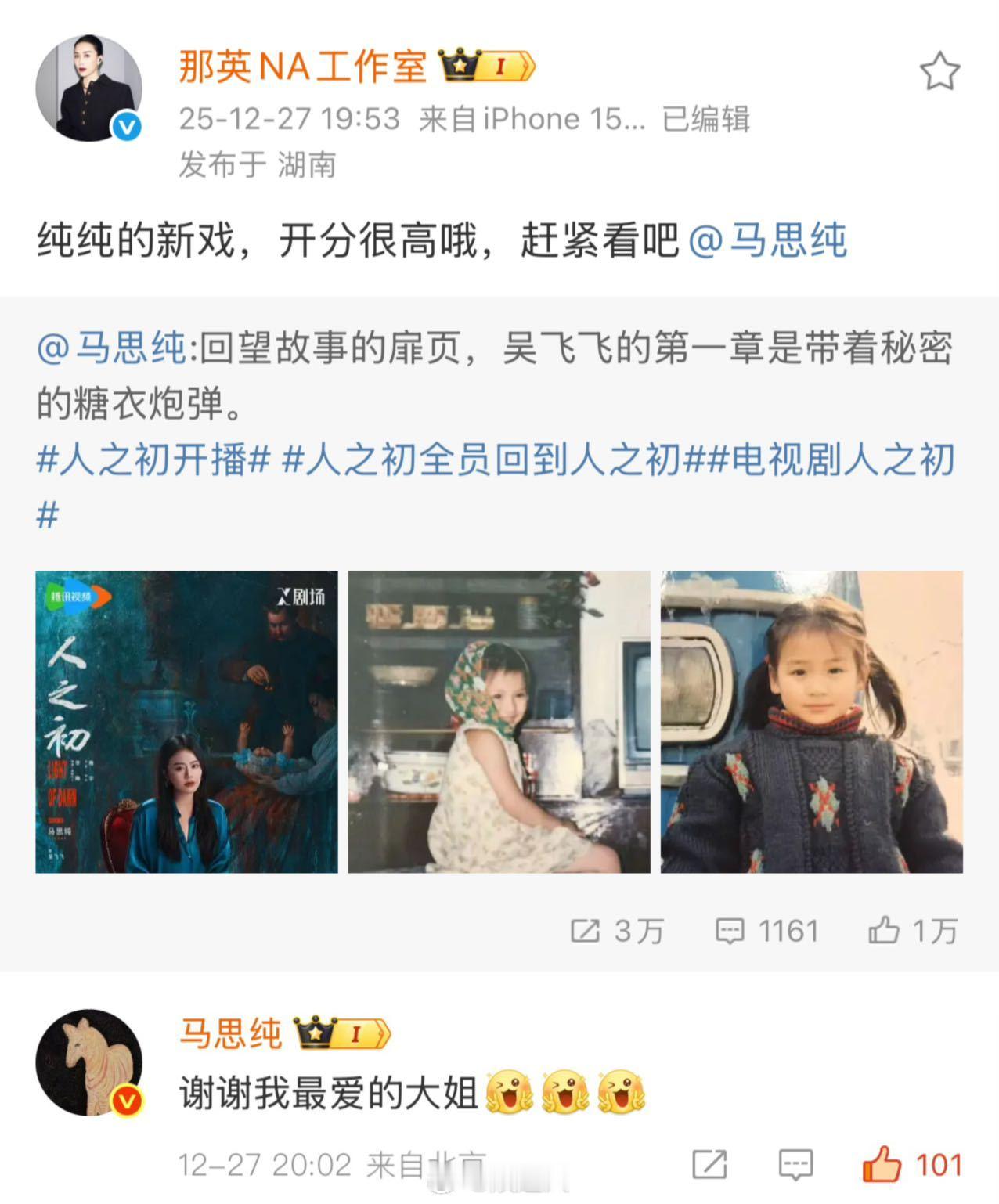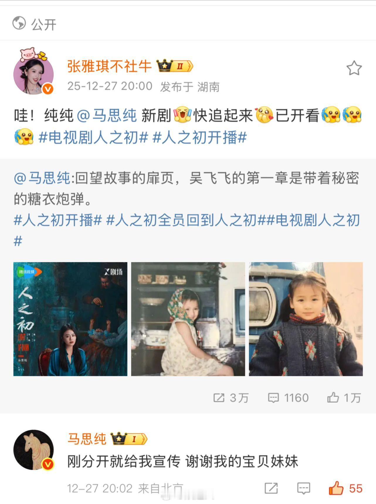 七老童心宣传马思纯新剧 永远都会被花少的友情线感动到啊!马思纯新剧《人之初》今日开播,七老童心的大家纷纷为马老三打call!不是一时热闹,而是长久回响,不是节目限定,而是细水长流。这群人他们远比我们想象的还要好🥹🫶🏻大家都去看这个人之初啊,马老三演暗黑千金太有那味儿了!!!!电视剧人之初