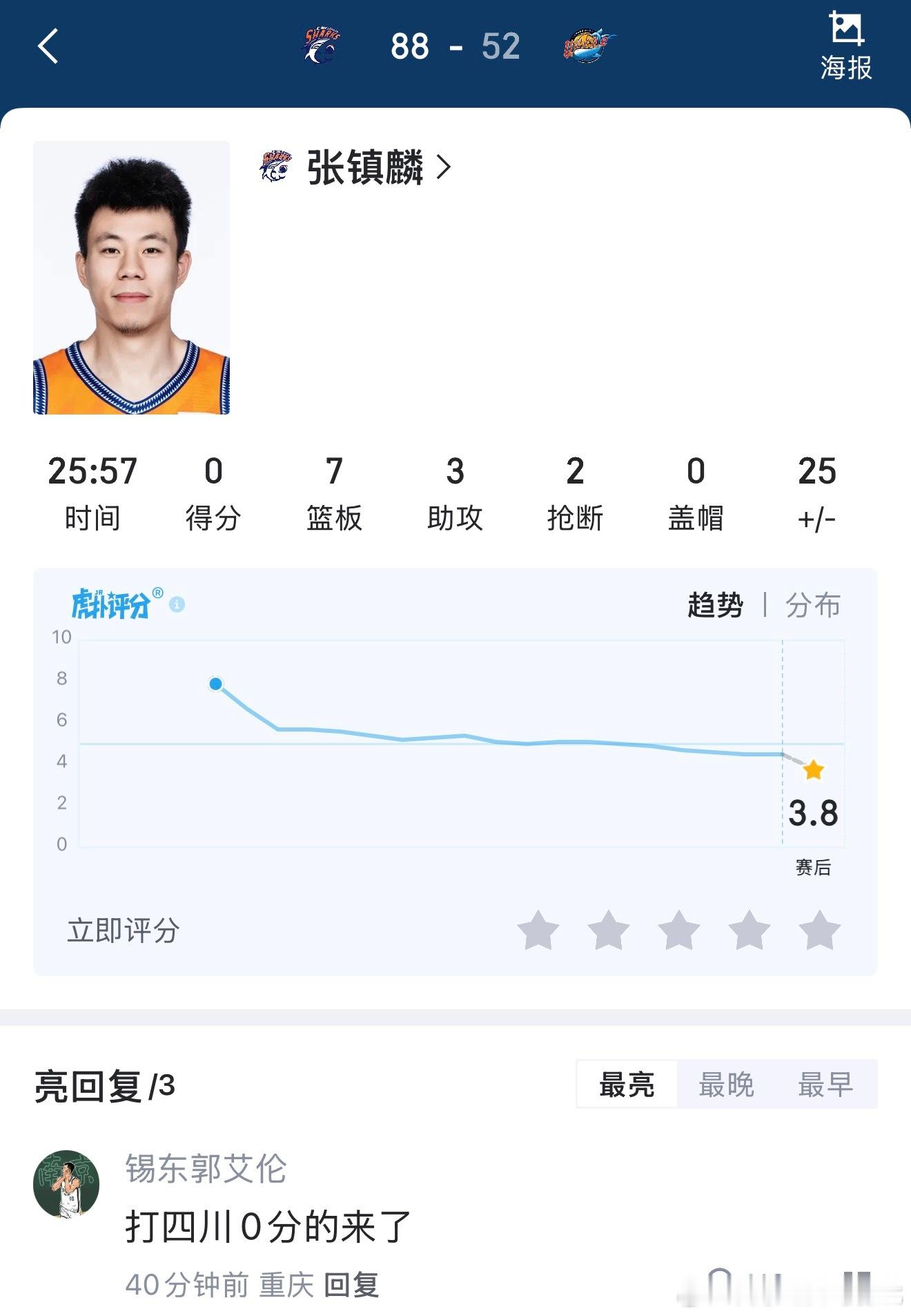 这位兄弟的日子也不太好过打四川得0分,也真是个人才张镇麟cba上海男篮CBA