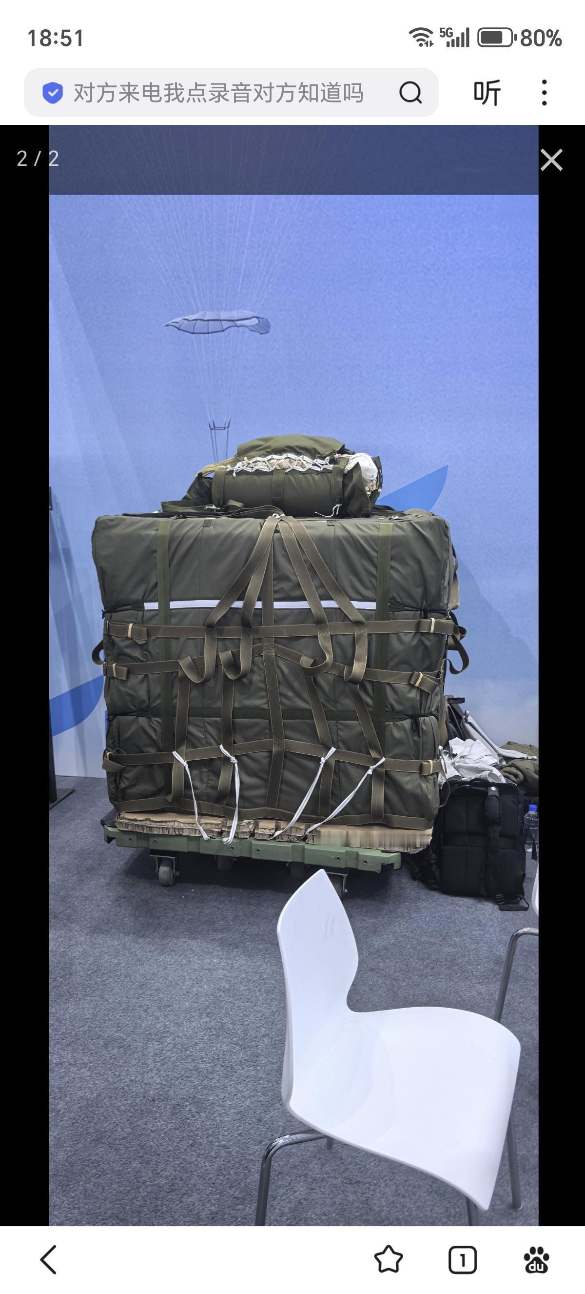 天鹰装备的T500系列物资空投系统,可满足150公斤一2000公斤空投重量的需求,空投系统包括货台系统、系留系统、投物伞系统(包括开伞分系统、引导伞分系统、主伞分系统、吊带分系统)、着陆自动脱离装置等。可根据客户需求,适应多种空投平台和空投物。