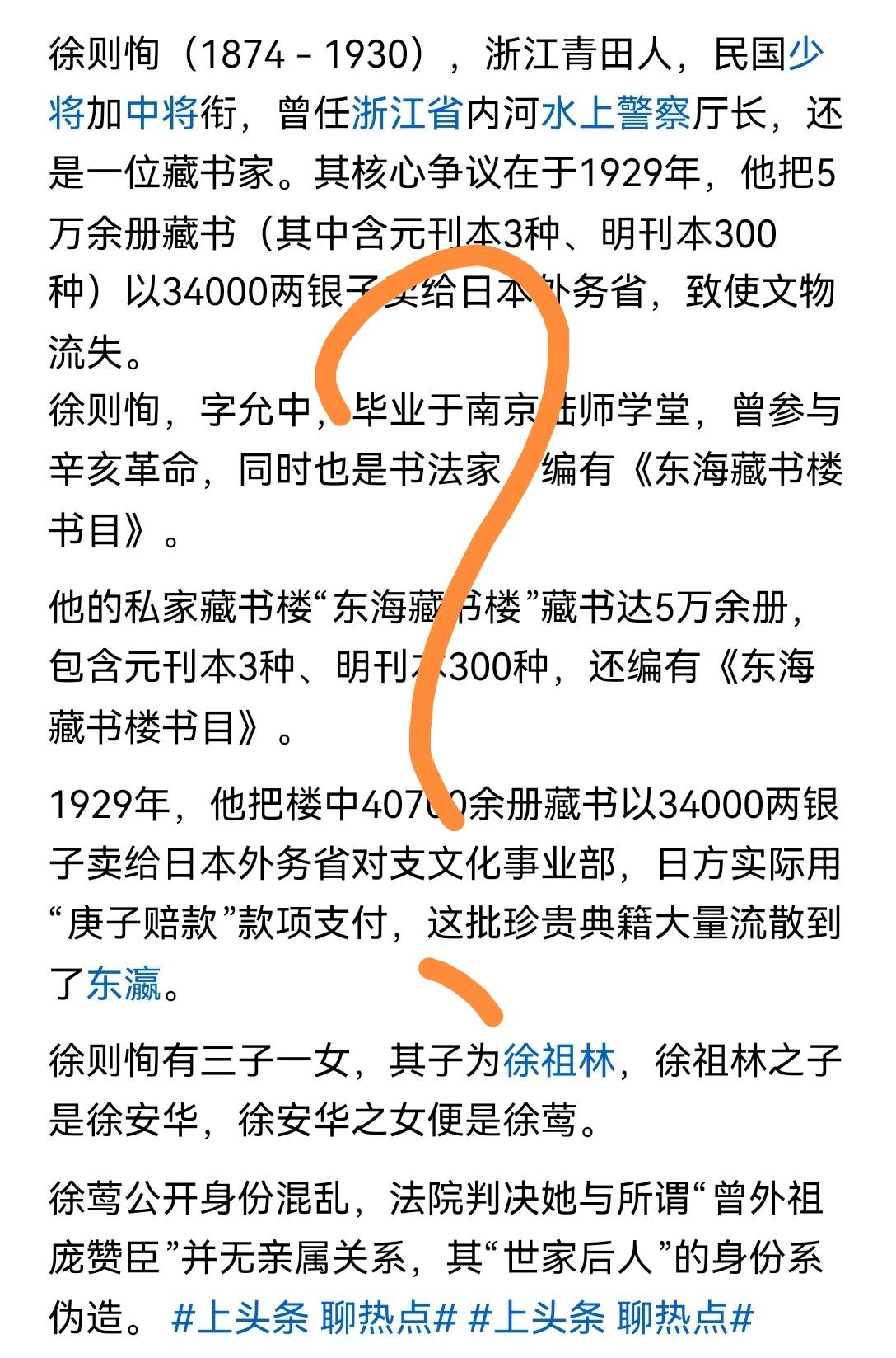 [吃瓜群众]“南博”的🍉越吃越大,支线故事“徐莺窃祖”也成了“世说新语”,昨天杭师大“徐副教授”(也算☁️先生的后辈)“破大防”,开始不顾“体面”、对庞叔令“破口大骂”——又被扒出,她的“真祖宗”也算“名人”,不过是靠“卖文物给日本”实现的“青史留名”[吐血] [思考]有一说一,从面相上看,徐副教授和徐湖平确实“明显相似”,又回到《亚洲周刊》那个“主线”问题——徐湖平他爹,到底是谁???