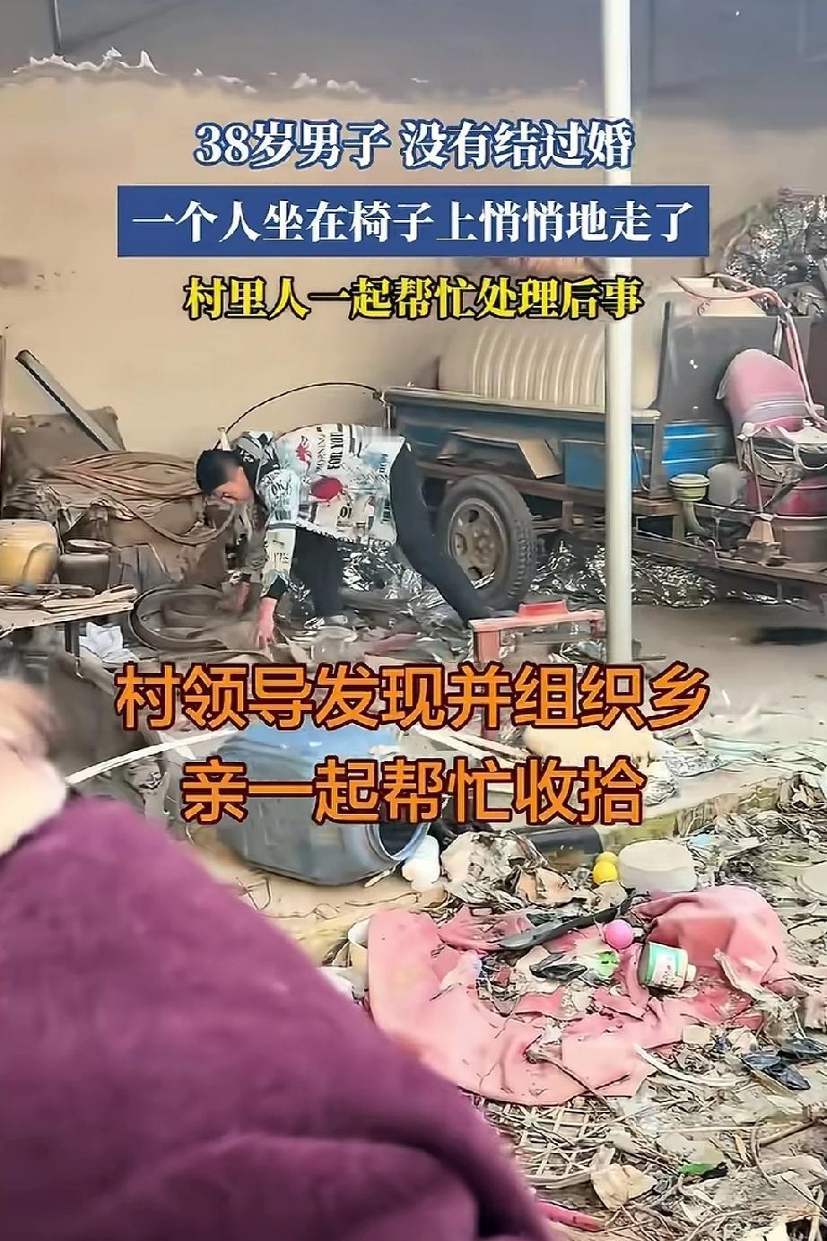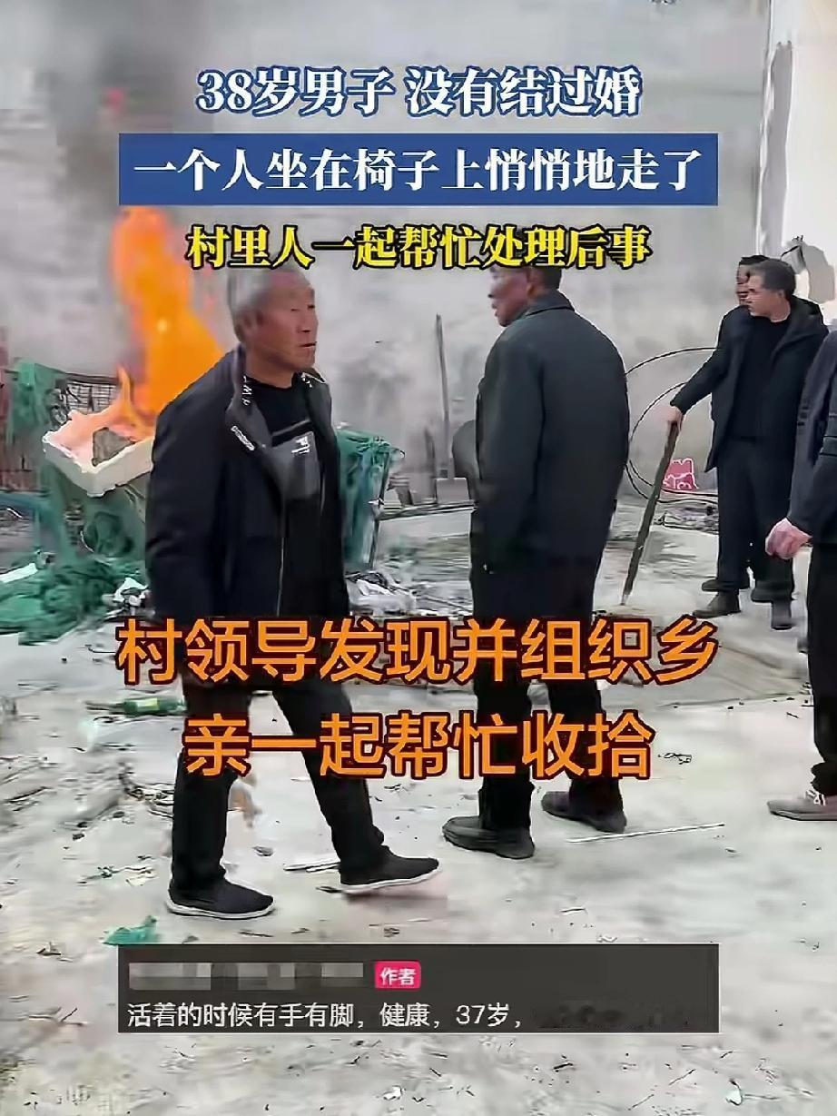 刚刷到一个视频,12月27日山西一38岁男子坐在椅子上悄悄的走了! 男子没有结过婚,说起来也是一种遗憾,没妻子儿女还走的这么早,对于孤身的男子这也许是很好的结果,在人生的最后没受病痛的折磨,没麻烦他身边的亲人,这样悄无声息的离世,给认识他的人留下无尽的感慨! 男子的后事是村领导组织乡亲们一起办理的,一个孤独无依的男子就这样结束了他的一生!