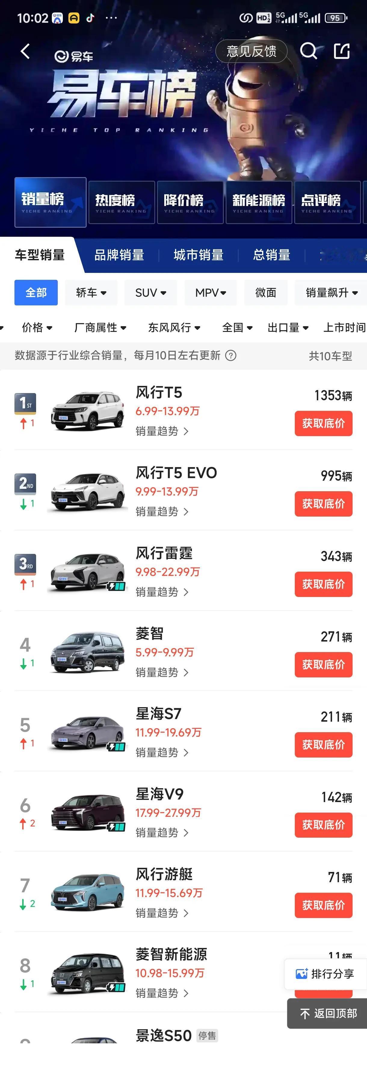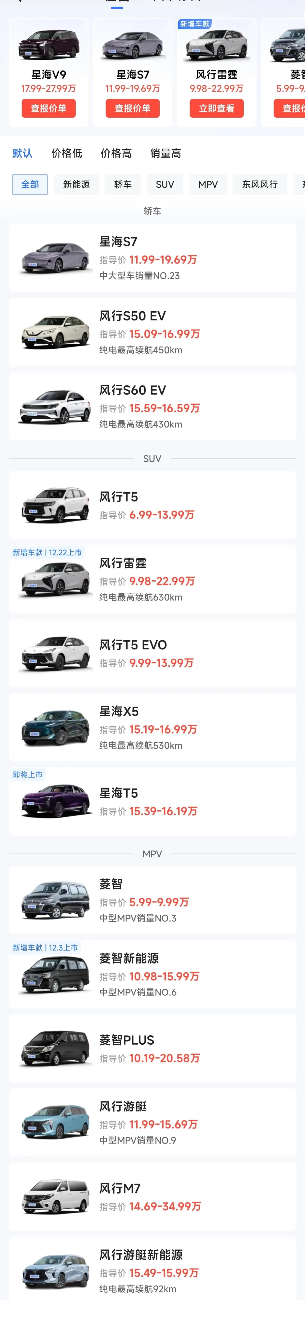 柳汽风行星海T5即将上市,貌似已经开启预售。目前星海系列除了主打的S7、V9外,还有近日推出的X5和T5。 后面这两款SUV逐步丰富了星海矩阵,可能是新能源进度的原因逐步替代风行雷霆和风行T5evo。是不是一个主打B端市场,一个打C端市场呢? 有网友发现,风行菱智系列和其他车型没有加入星海家族。这里的其他老车型主要走海外市场。国内东风风行主推星海家族和菱智家族的部分延续性车型。