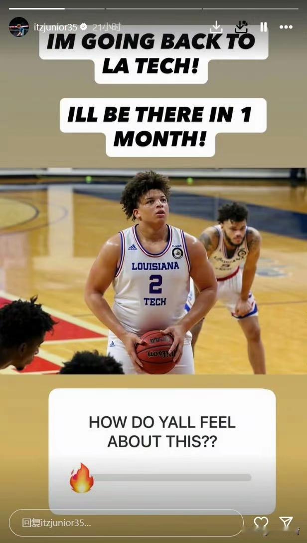 有情况?洛夫顿自曝将一个月内将回归大学母校! 近日,上海久事男篮大外援洛夫顿在近期在自己的个人社交平台宣布,他将在一个月内回到自己的大学母校路易斯安那理工大学,还发起了投票,询问球迷的意见。 近期NCAA政策放宽,这让一些曾经效力过夏联的NBA选秀球员可以返回大学重新征战NCAA。 洛夫顿目前效力于上海久事男篮,近期在CBA表现挣扎,还曾遭遇过主帅的DNP。上海目前5胜2负排在CBA联赛第三。