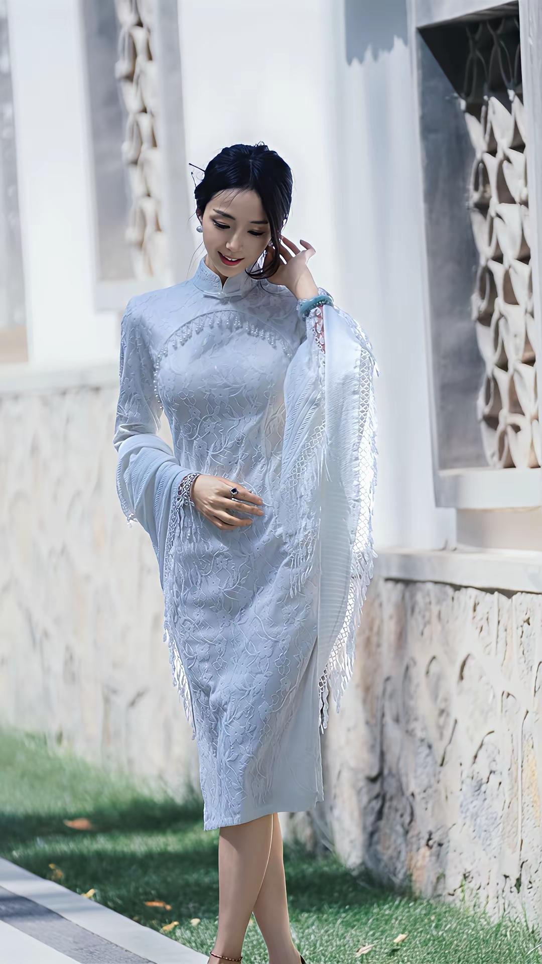 中式旗袍穿搭低眉含笑,温文儒雅旗袍古典新中式 国风范中式旗袍 旗袍风服饰 国风穿搭旗袍 旗袍穿搭图鉴 旗袍裙穿搭