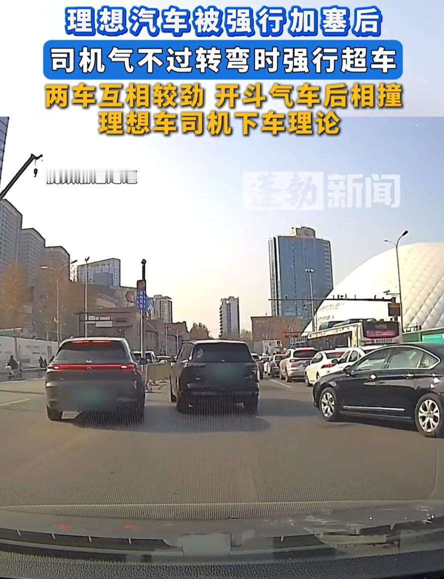 这又是何必呢!山东济南,一辆理想车主在等红灯时被人强行加塞,两人谁也不服谁,在路上互相较劲,结果就是两车相撞,不过有意思的是,后车车主表示被强行加塞的车主,其实自己也是加塞上来的。网友:开车路上最讨厌两种人:一种是加塞我的人,另一种是不让我加塞的人 根据后车的行车记录仪显示,绿灯路口,车流缓缓往前挪,一辆理想车正准备直行,侧面突然插进来一辆车,不打灯也不客气,硬是要挤进车道里。理想车主一看就不乐意了,你挤我也挤,方向盘一扭,油门一点,直接顶了上去 两人就这么杠上了。你往前拱一点,我也跟紧一步,谁也不退。几个来回,车身越贴越近,最后还是蹭上了。这下谁也别走了,双双停在路中间。理想车主拉开车门就冲下去,隔着车窗跟对方理论起来,脸都气红了 后面跟着的司机全程看了个明白。他后来在网上说,路上有些事忍忍就过去了,其实前面那辆理想车,刚才也是插了他的队,结果轮到自己被插的时候,一点没忍,直接杠上了 很多网友看了都摇头:路上最烦两种人,一种是硬要插我队的,另一种是我想插队他不让的 话是调侃,但理不糙。开车上路,谁都可能偶尔走错道,打个灯、摆个手,大多数人都愿意行个方便。可要是啥也不表示,硬往里挤,那谁心里都不舒服 但话说回来,开车最怕的就是斗气。你顶我一下,我别你一回,争的不过是一两秒,赌上的却是安全。真要撞了,耽误时间不说,还得修车、扯皮,一整天的心情都搭进去。有时候让一步,不是怂,是明白不值得。方向盘在手里,情绪也得握稳了 路上车多,人心也杂。有人急着送孩子,有人赶着去医院,也有人纯粹是性子急。咱们都只是临时凑在同一条道上的陌生人,过了这个路口,或许再也不见。让一下,可能就帮别人省去不少麻烦;争一口气,却可能惹来更大的麻烦 两车斗气最后相撞 车主下车理论
