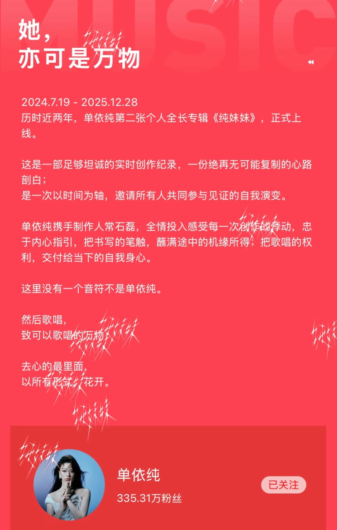 单依纯二专介绍写得真好-这里没有一个音符不是单依纯。然后歌唱,致可以歌唱的万物。
