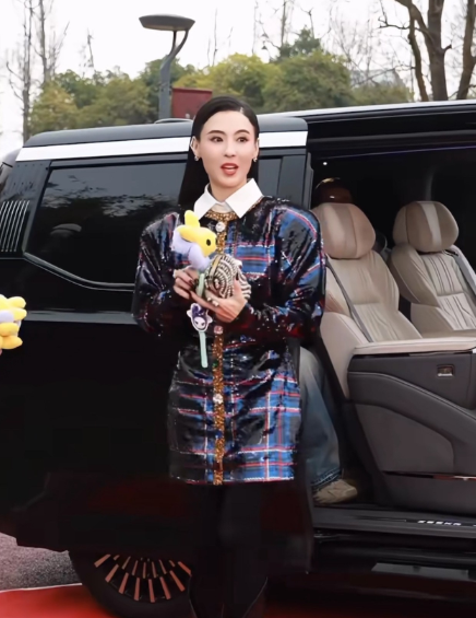 张柏芝的战袍太有气场了,亮片点缀闪耀迷人~ 复古奢华的氛围令人惊艳,整个造型充满了时尚力量感。