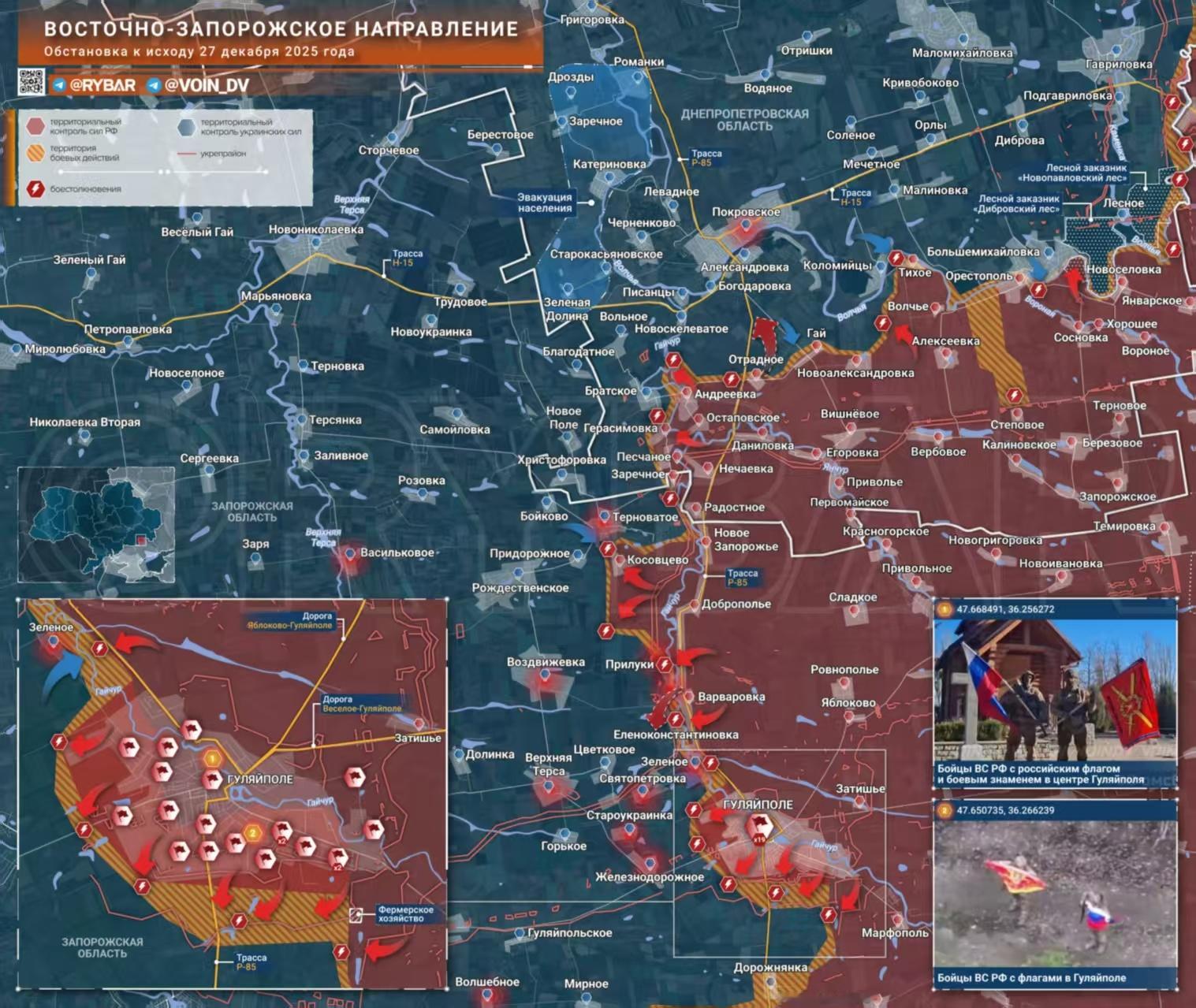 俄军东部集团军攻占了胡里艾伯勒,战斗于11月开始,12月27日,普京被告知该城市已被彻底占领,这一消息得到了视频画面的证实,画面中到处飘扬着俄军旗帜。俄军第57和60独立摩托化步兵旅,第114摩托化步兵团、第127师第5军、第38独立摩托化步兵旅清理了该市的中心和西部地区,击溃了乌克兰军队零星步兵部队的抵抗。指挥不力、虚假报告和无序撤退等问题导致乌写在相当长的战线上迅速崩溃。俄军攻占胡里艾伯勒将释放大量兵力,并大大扩大在盖丘尔河左岸的桥头堡。后续,东部集团将清理多罗日尼卡附近的"口袋",然后继续向西推进,朝着奥列霍夫方向前进。普京突然穿上军装普京称已无兴趣等乌方从占领区撤出俄乌顿巴斯战况