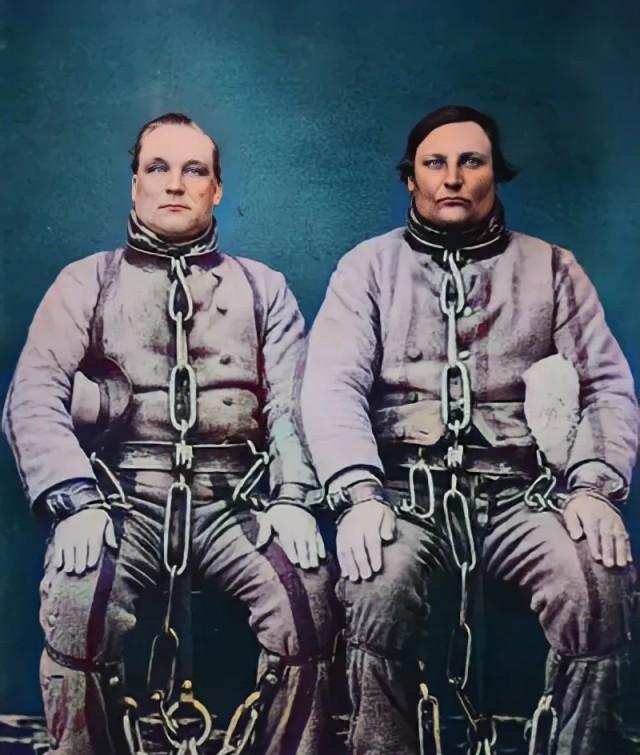 1880年,澳洲,两名罪犯浑身被厚重的铁链五花大绑,没错这是为他们特意打造的,他