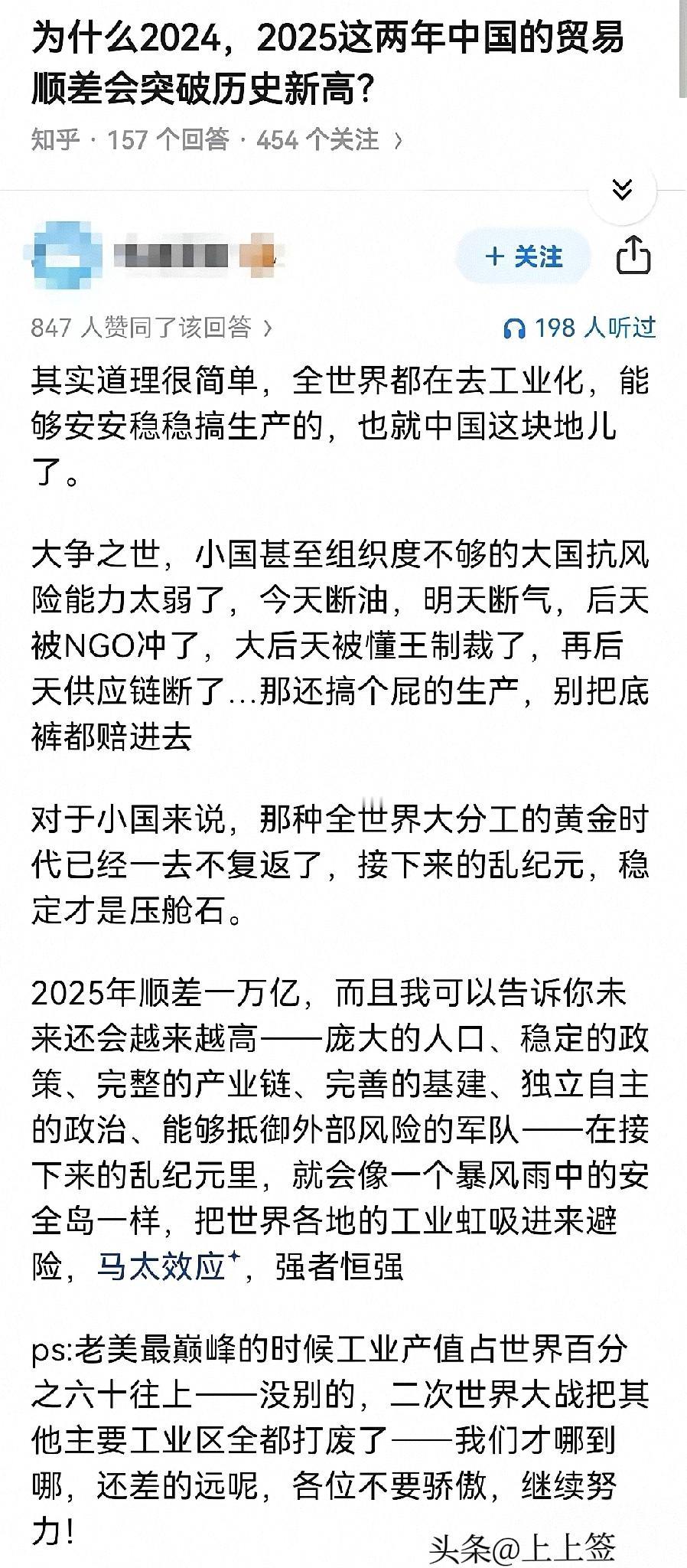 因为中国出口的汽车机床太阳能电池板越来多,进口的石油天然气矿石农产品越来越便宜! 很多人以为只是“卖得多、买得贱”,其实背后是两本账一起算:出口端,新能源车、锂电池、光伏“新三样”去年全球市占率已冲到40%,把德日韩传统产线挤得满仓库库存;进口端,同样是一船货,今年预估1-11月原油、铁矿砂、大豆均价同比再跌一成,光原油就省出430亿美元,等于白捡三艘福建舰的预算 。 更关键的是航线自己说了算。南美-中国铁矿石航线,40万吨级Valemax矿船单程运费比去年跌约28%,我们船厂自己造的;中东-中国原油航线,VLCC日租金从9万美元砍到3万,也是中远海能旗下船队控盘。船价、运费一起降,才把便宜矿山、便宜油田真正变成了便宜原料 。 产业链红利也在国内转圈。光伏组件出口价五年降了六成,直接拉低海外电站投资成本;海外电站越建越多,又反过来订中国逆变器、支架、电缆,一条链全吃。5月制造业PMI里,光伏相关的新订单指数飙到68,远高于荣枯线,证明便宜不是赔本赚吆喝,而是规模效应把利润藏在了量里 。 这种“卖高、买低”的剪刀差,让工业国罕见的出现了贸易条件持续改善。上半年GDP增速5.3%,进出口只增2.9%,可利润反而更厚——同样一美元货,换回来的原材料比去年多了12%,等于给每台出口机床都打了88折的原料底账,这才是“越卖越赚”的底牌 。 中国制造把高端设备卖出溢价,又把原料运费压成地板价,剪刀差越拉越大,等于用别人的资源给自己加杠杆;只要规模优势在,这条“低价买、高价卖”的通道就继续是中国制造的隐形红利。