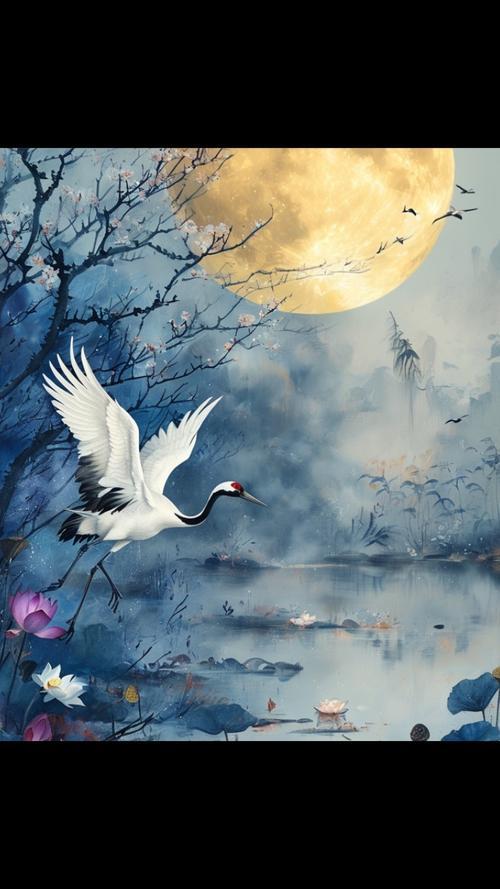 上联:风动芰荷芳香溢 下联:月照池塘栖鹤惊