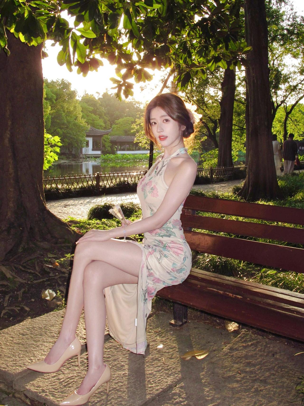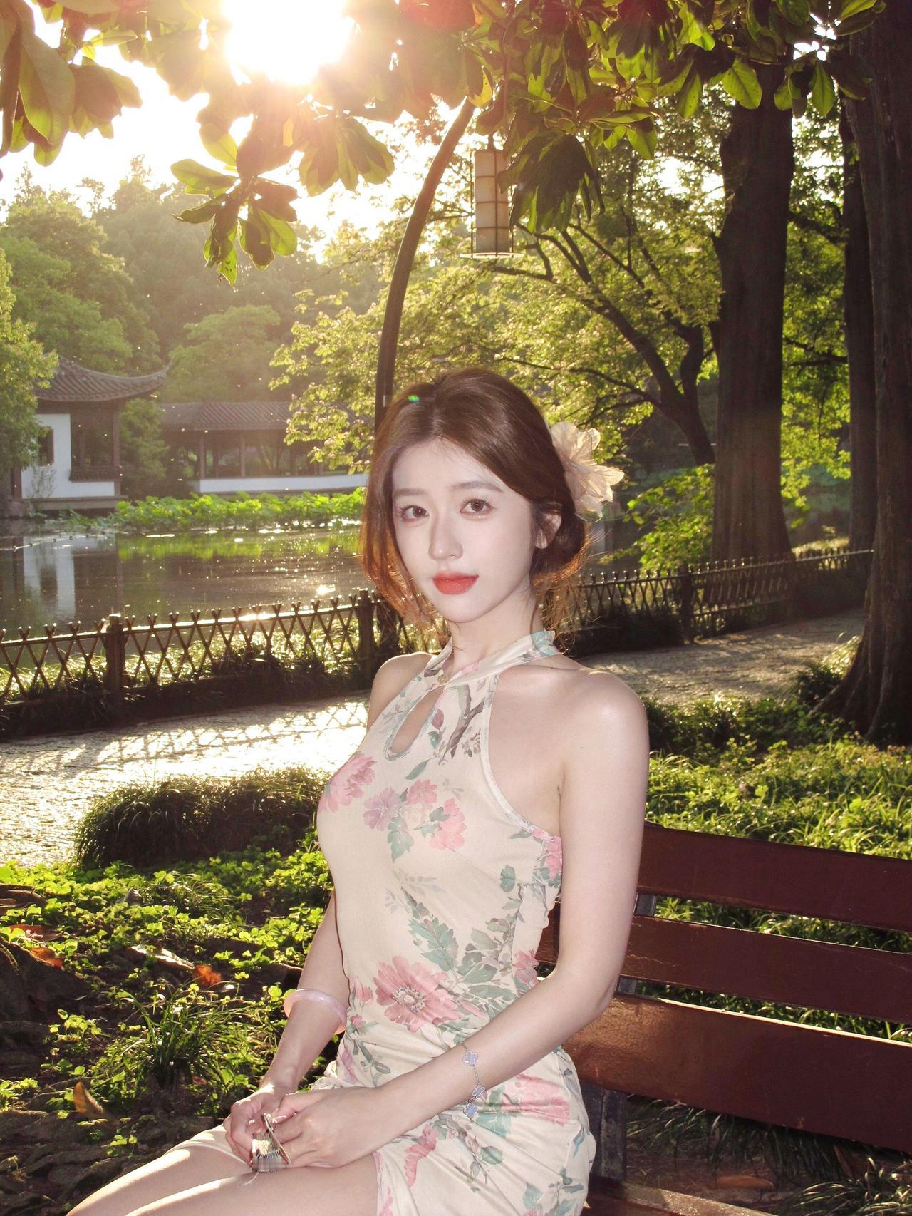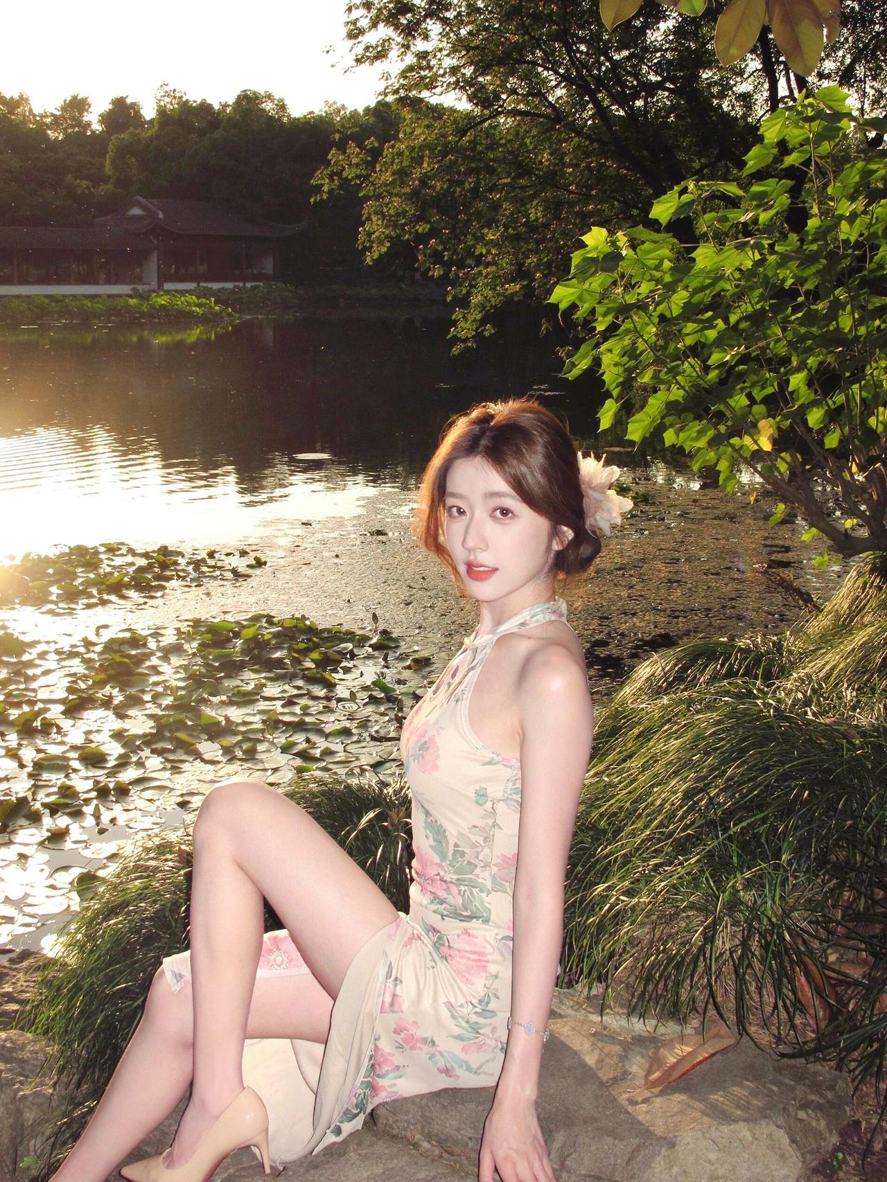 被夕阳吻过的旗袍, 藏着江南的柔情。