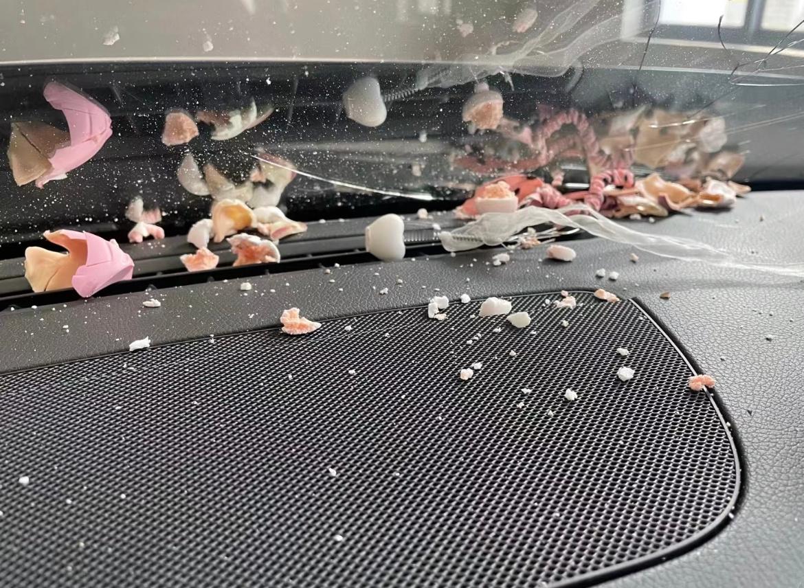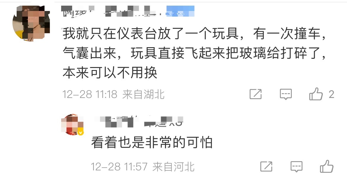 不要在车里放小玩偶了小到玩偶,大到摆件,都不要放,不仅会影响安全气囊弹出,急刹或碰撞时,玩偶会快速飞出对人员造成二次伤害!另外,液体香水、打火机、充电宝也最好不好留在车里。千万别抱侥幸心理~