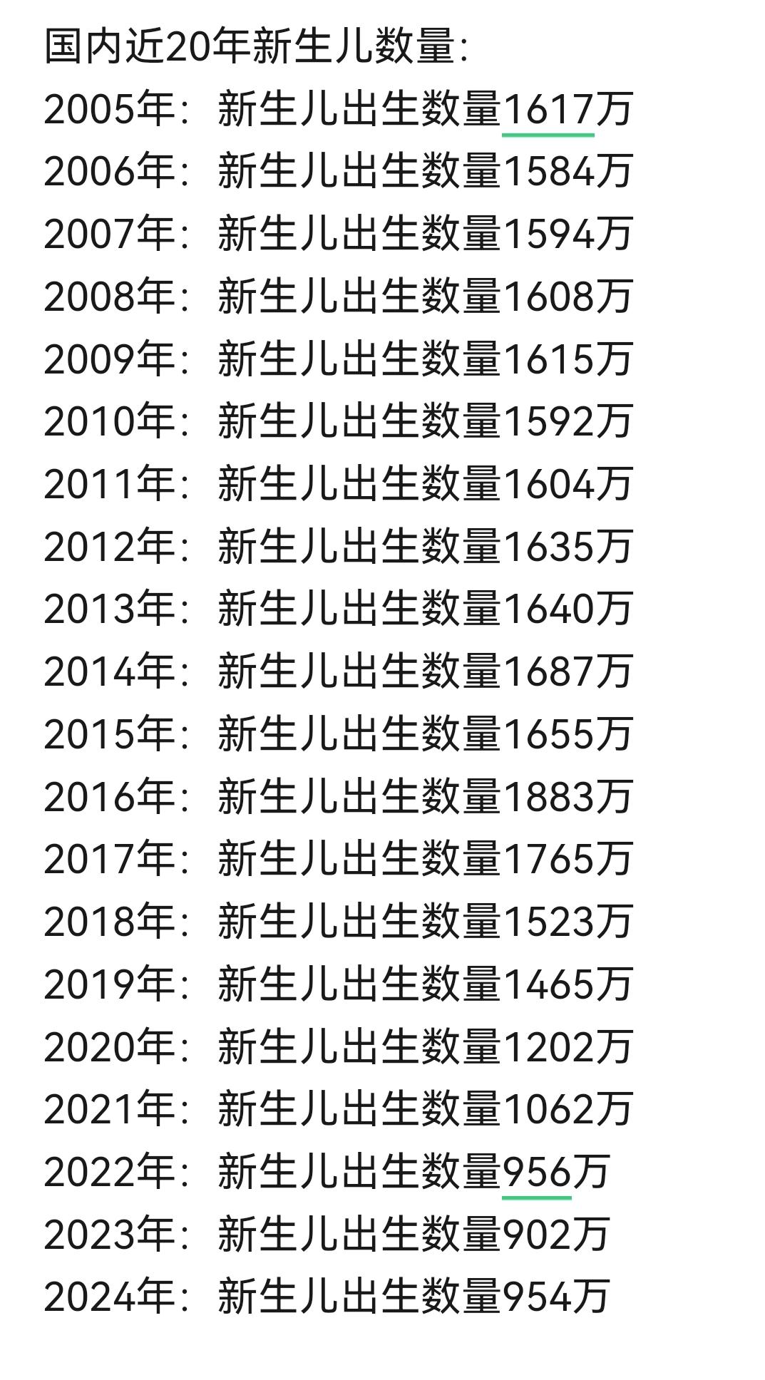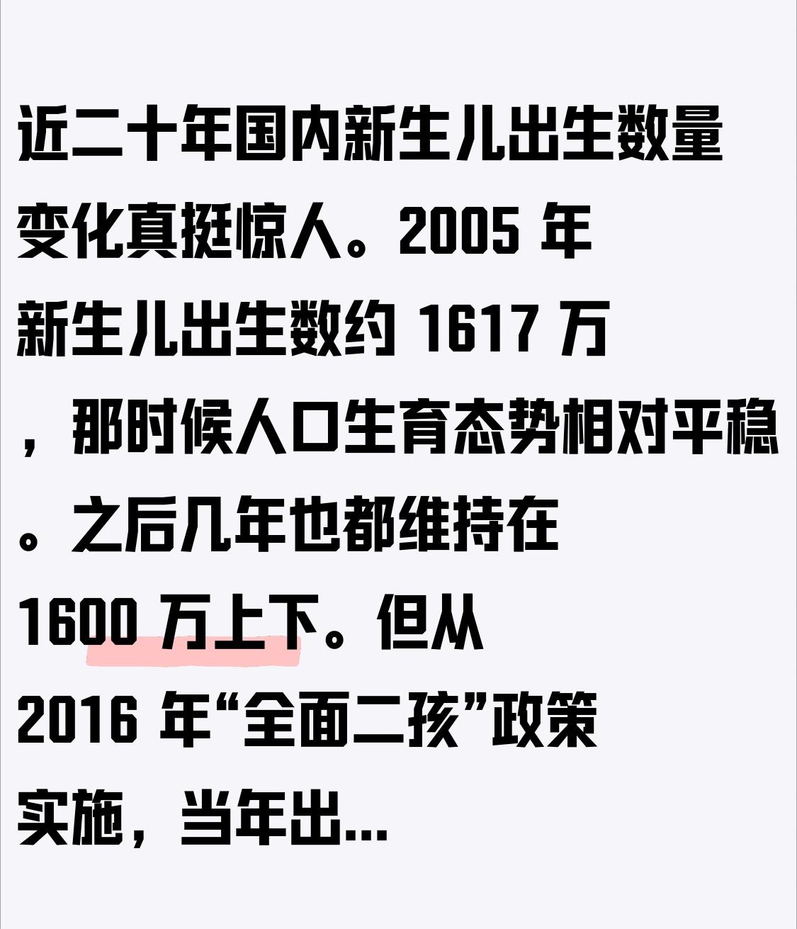 近二十年国内新生儿出生数量变化真挺惊人。2005年新生儿出生数约1617万