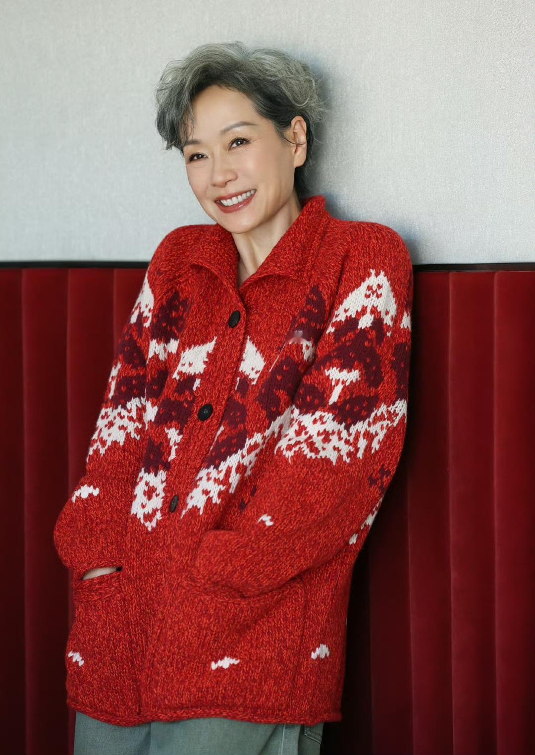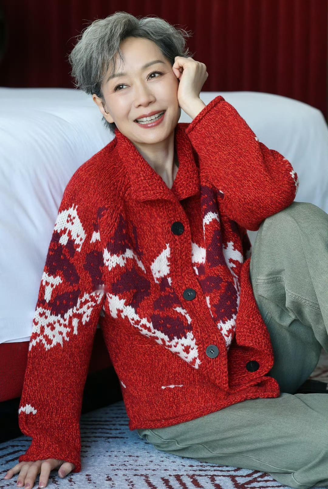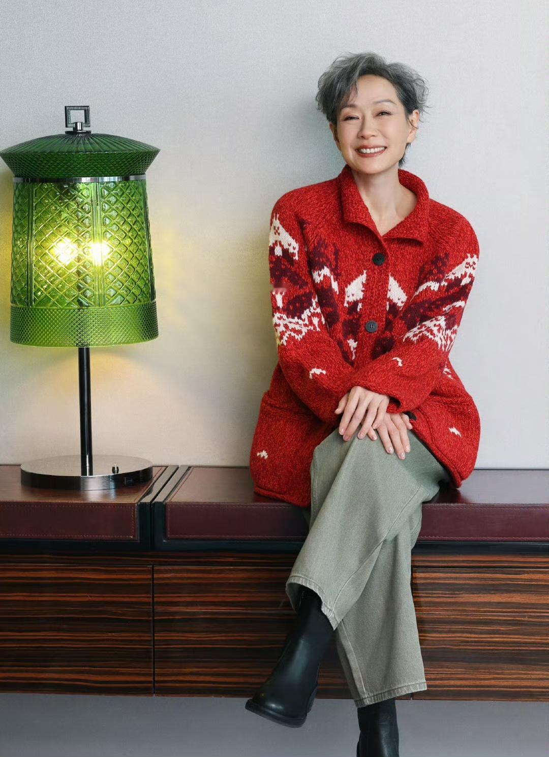 60岁左右的女人过年怎样穿好? 还在纠结中的你,不如看看62岁的叶童是怎样穿的吧!我觉得,叶童的这一身穿搭,很适合过年。红色毛衣开衫+绿色阔腿裤,惊艳又清新,低调又文艺,并且有一种节日氛围感,一切刚刚好,脚踩一双黑色的鞋子,添上几分神秘感,完美无比! 看了叶童的穿搭,这下过年你知道怎么穿了吧…… 最后我想说的是,叶童的红色毛衣开衫好美呀,看起来基本上不挑年龄,40岁到70岁都可以穿,谁穿谁好看,你们觉得是不是呢?