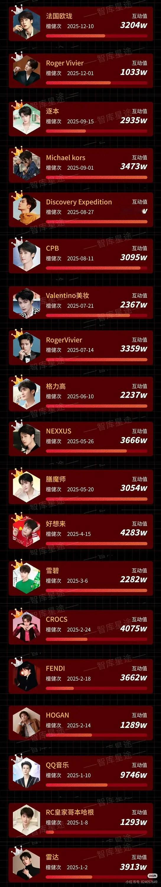 檀健次一年新宣商务15个,商务升t5个,国民奢牌全覆盖