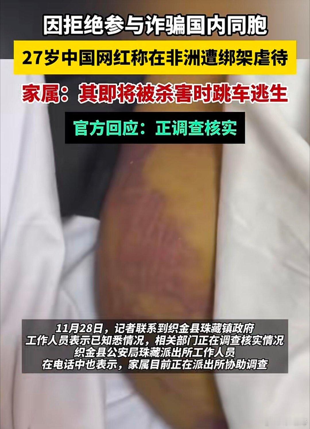 网红非洲洋洋涉嫌绑架同胞被抓“手脚被打断,小黑屋里关了七天七夜,最后在绑匪欲将其带往他处杀害的途中,他纵身跳车,才捡回一条命。”手段真的残忍,太可怕了!