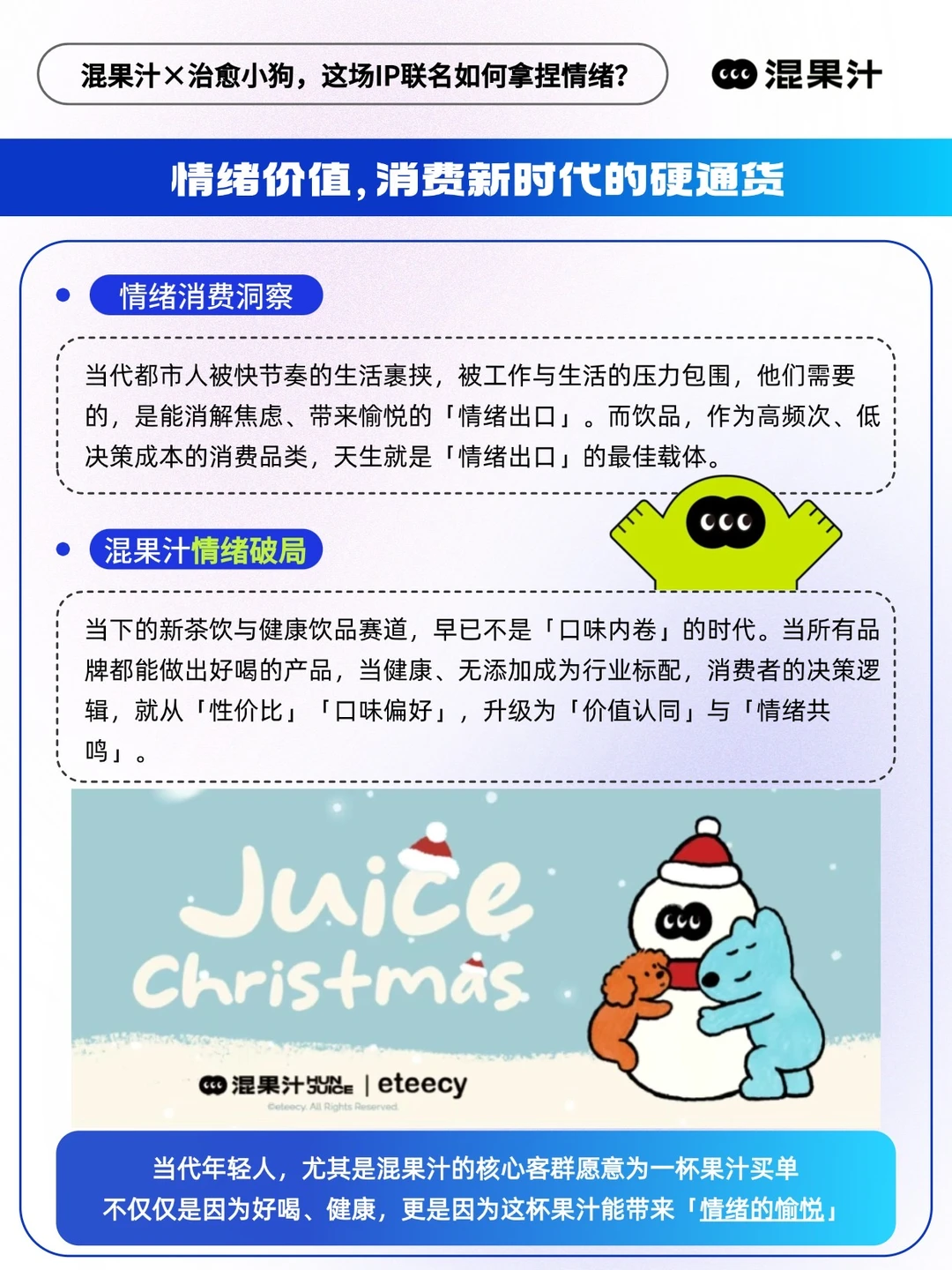 恰逢双旦时节,混果汁携手 eteecy 治愈小狗的联名企划,恰是精准踩中这份核心需求的范本。