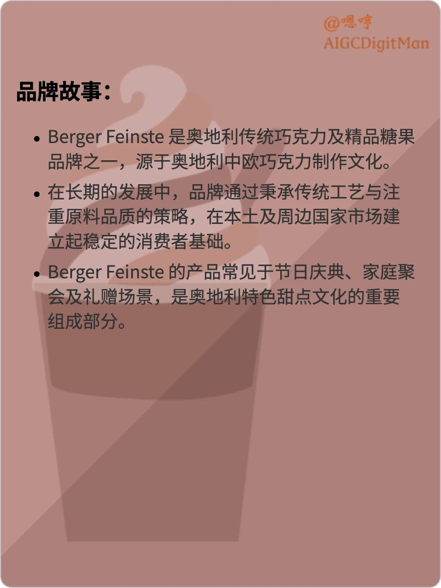 Berger Feinste 是奥地利传统巧克力及精品糖果品牌之一,源于奥地利中欧巧克力制作文化。