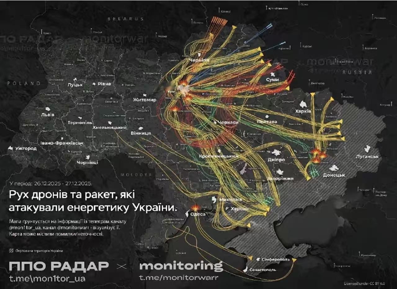 俄军对基辅发动大规模空袭,基辅全城陷入黑暗。从作战地图看,俄军开始将大量弹药集中在基辅,而不是像以往那样分散袭击乌克兰各地。从袭击效果看,也许“乌克兰的一架F16成功拦截了30几枚俄罗斯导弹”。 但这一次,导弹没赢,可基辅还是“黑”了。这仗打到现在,俄军的新打法,透着一股想“毕其功于一役”的狠劲,背后到底打的什么算盘? 时间线拉回到27日凌晨。 就在美乌领导人计划会晤的前夕,俄军的“匕首”高超音速导弹、无人机和各类精确制导武器,像雨点一样砸向基辅。这次袭击的目标非常明确——电力基础设施。结果就是,基辅市和基辅州超过50万用户断电,全城陷入黑暗与寒冷。根据乌方统计,这轮空袭已造成2人死亡、46人受伤。 一个明显的战术转变。 过去,俄军的空袭往往覆盖乌克兰多个城市。但这次,地图上的红点高度集中在首都基辅。这很可能是一种“斩首”或“震慑”战术的尝试,意图在关键时刻最大化心理和政治冲击,打断乌克兰的外部协调节奏。 而另一边,乌克兰的防空网也在“升级”。 就在几天前的12月22日至23日夜,乌克兰空军报告称,其F-16战斗机成功拦截了34枚KH-101和伊斯坎德尔-K型巡航导弹。一架战机取得这样的战果,确实令人印象深刻,也证明了西方援助的先进装备在实战中发挥了关键作用。 这就形成了一个矛盾的战场图景: 一边是乌军宣称的高效拦截,另一边是基辅大规模断电的残酷现实。这恰恰说明,现代战争是体系对抗,一两件“明星武器”无法决定一切。俄军采用“导弹+无人机”的饱和式攻击,目的就是耗尽和穿透对方的防空体系。即便大部分目标被拦截,只要有一枚命中关键节点,就能造成巨大破坏。冰冷的数字背后,是普通民众在寒冬中失去光明与温暖的艰难。 这场冲突让我们再次看清,国家安全没有侥幸。 强大的、完整的国防体系,才是抵御风暴最坚实的盾牌。分裂与冲突只会带来无尽的伤痛,唯有团结与自强,才能守护家园的灯火常明。我们对和平的渴望从未改变,但和平从来不是乞求来的,它需要足够的实力来捍卫。 说到底,战争的最终代价,永远是平民百姓来承担。 看着基辅的黑暗,心里挺不是滋味。任何冲突,早点结束才是对普通人最大的仁慈。 你怎么看俄军这种集中火力的新打法?你觉得F-16这样的“明星装备”能改变战争走向吗?欢迎在评论区聊聊你的看法。