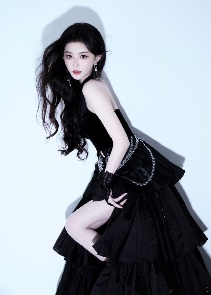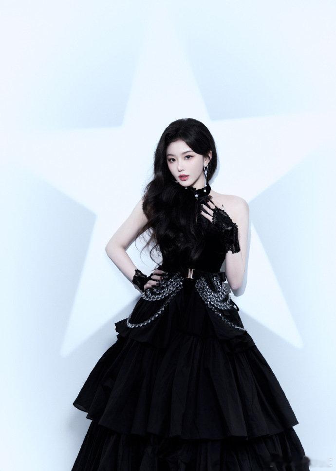 孔雪儿黑丝绒小蛋糕造型救命!孔雪儿黑丝绒挂脖裙也太绝了,肤白貌美说的就是她吧!